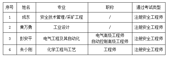 2021年12月21日,从官网获悉,重庆美高公司成东等4人通过2021年度注册安全工程师考试,可喜可贺!