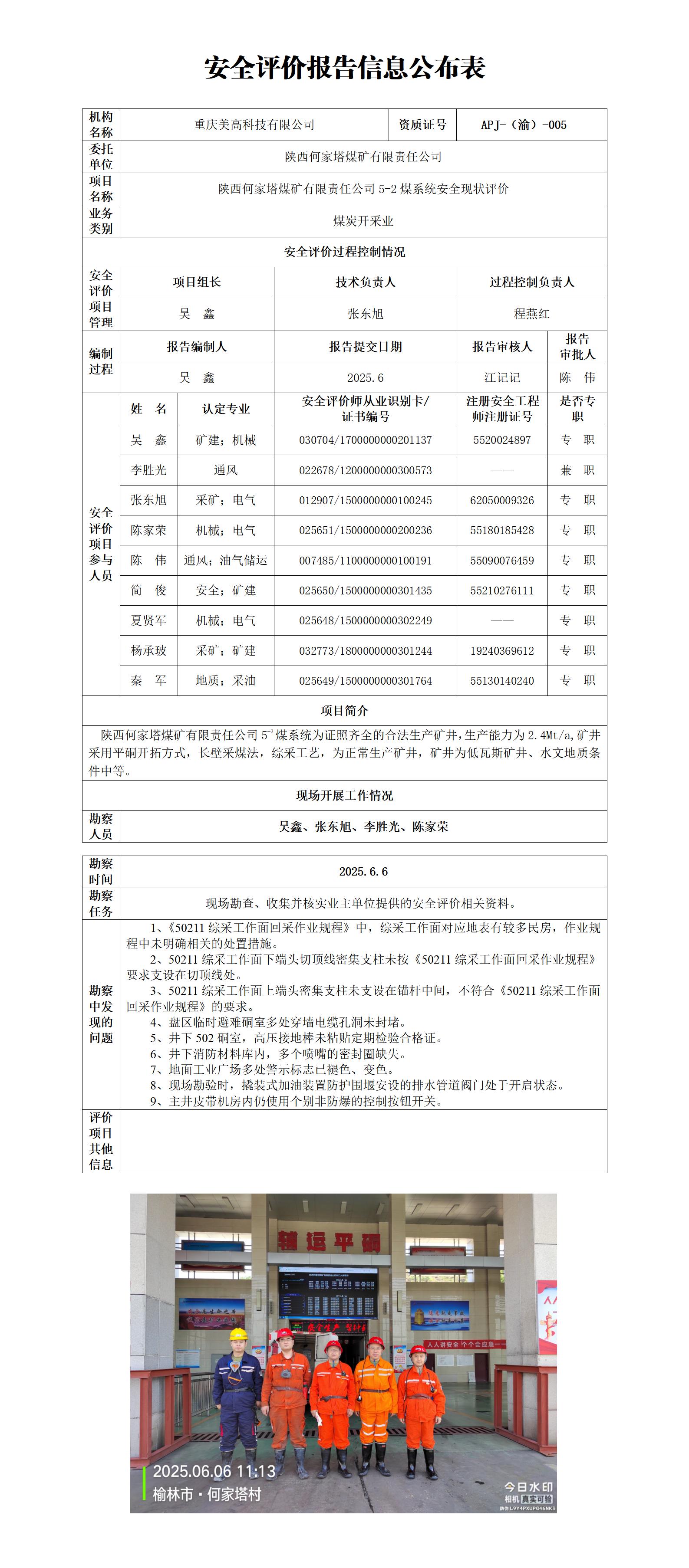2025年2季度-陕西何家塔煤矿有限责任公司5-2煤系统安全现状评价