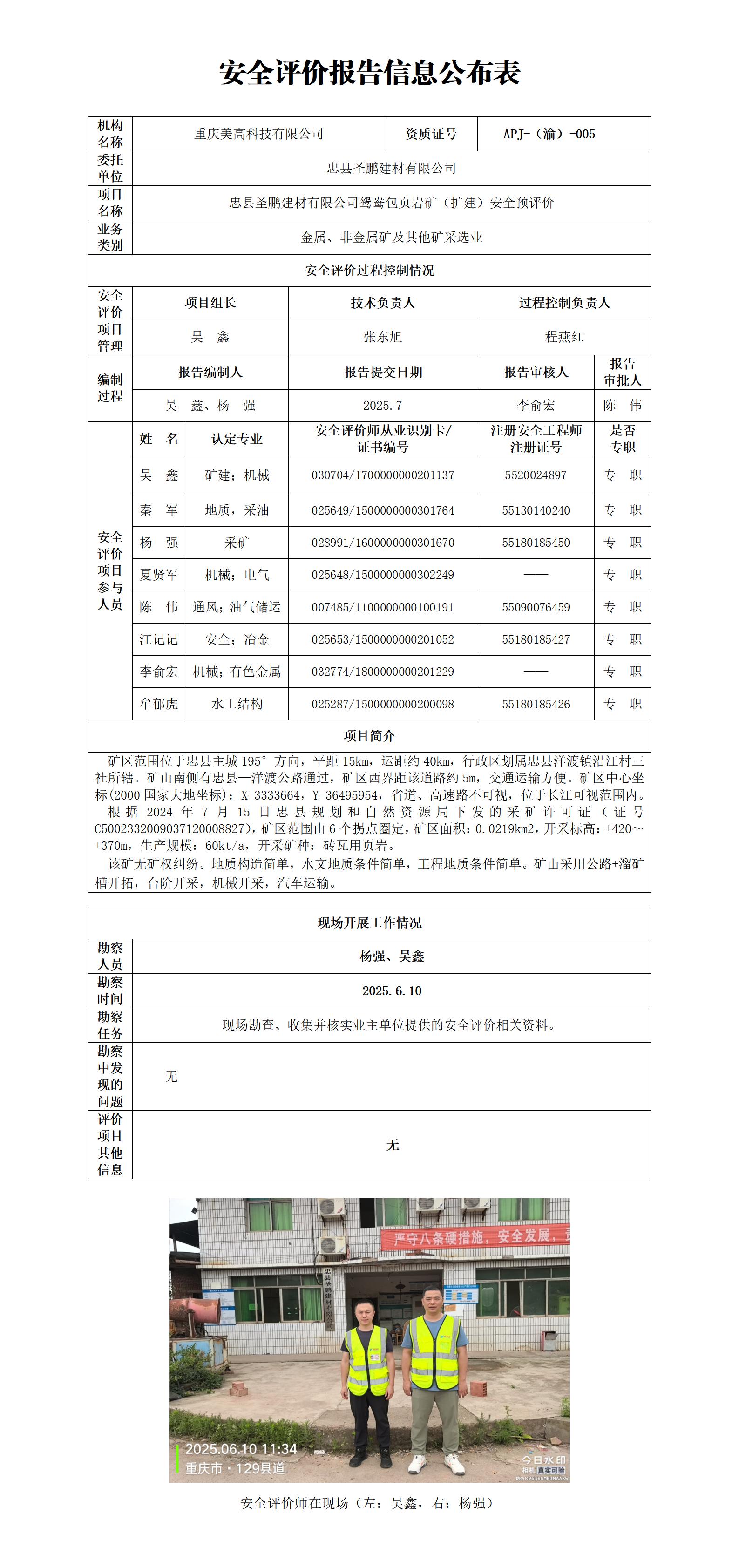 2025年3季度-忠县圣鹏建材有限公司鸳鸯包页岩矿(扩建)安全预评价_01