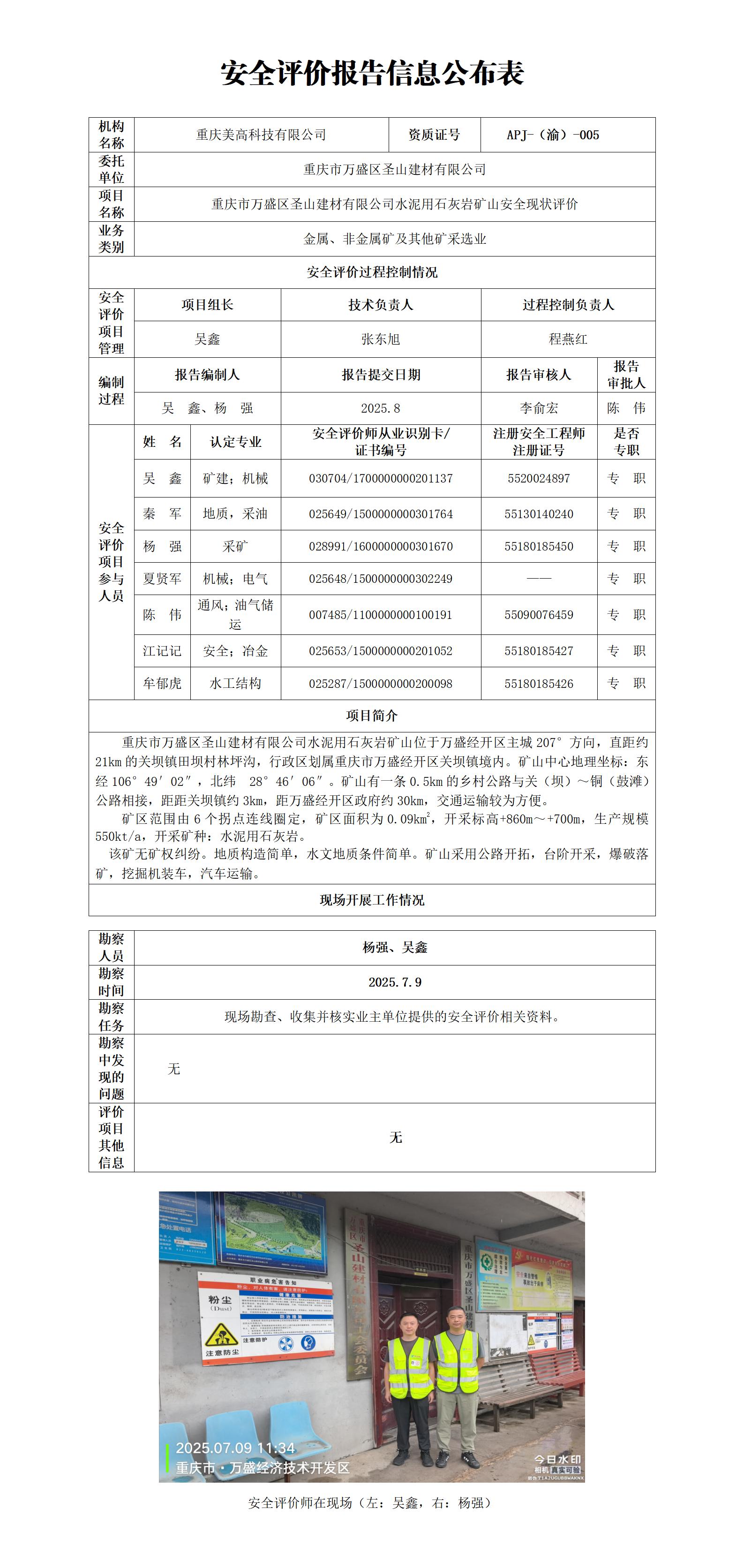 2025年3季度-重庆市万盛区圣山建材有限公司水泥用石灰岩矿山安全现状评价