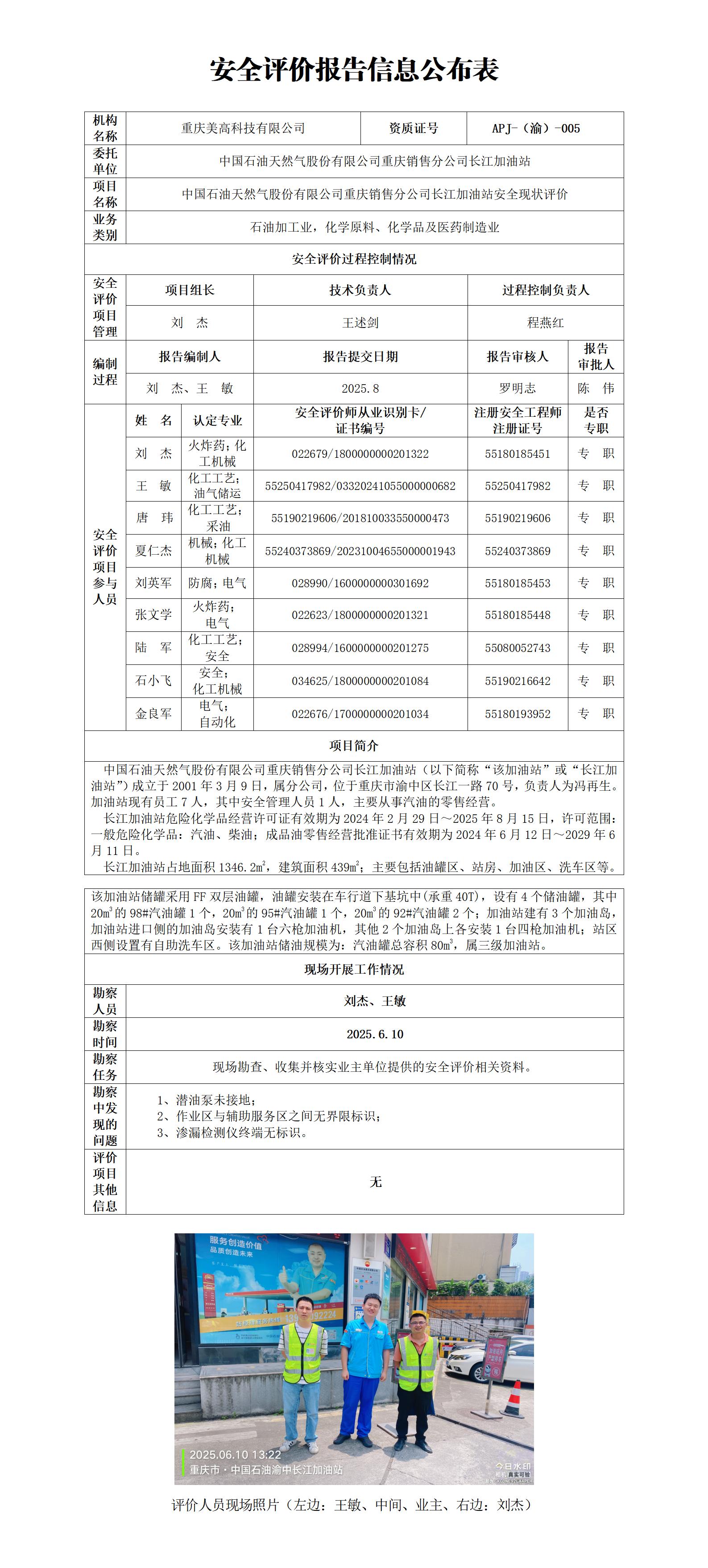 2025年3季度-中国石油天然气股份有限公司重庆销售分公司长江加油站安全现状评价