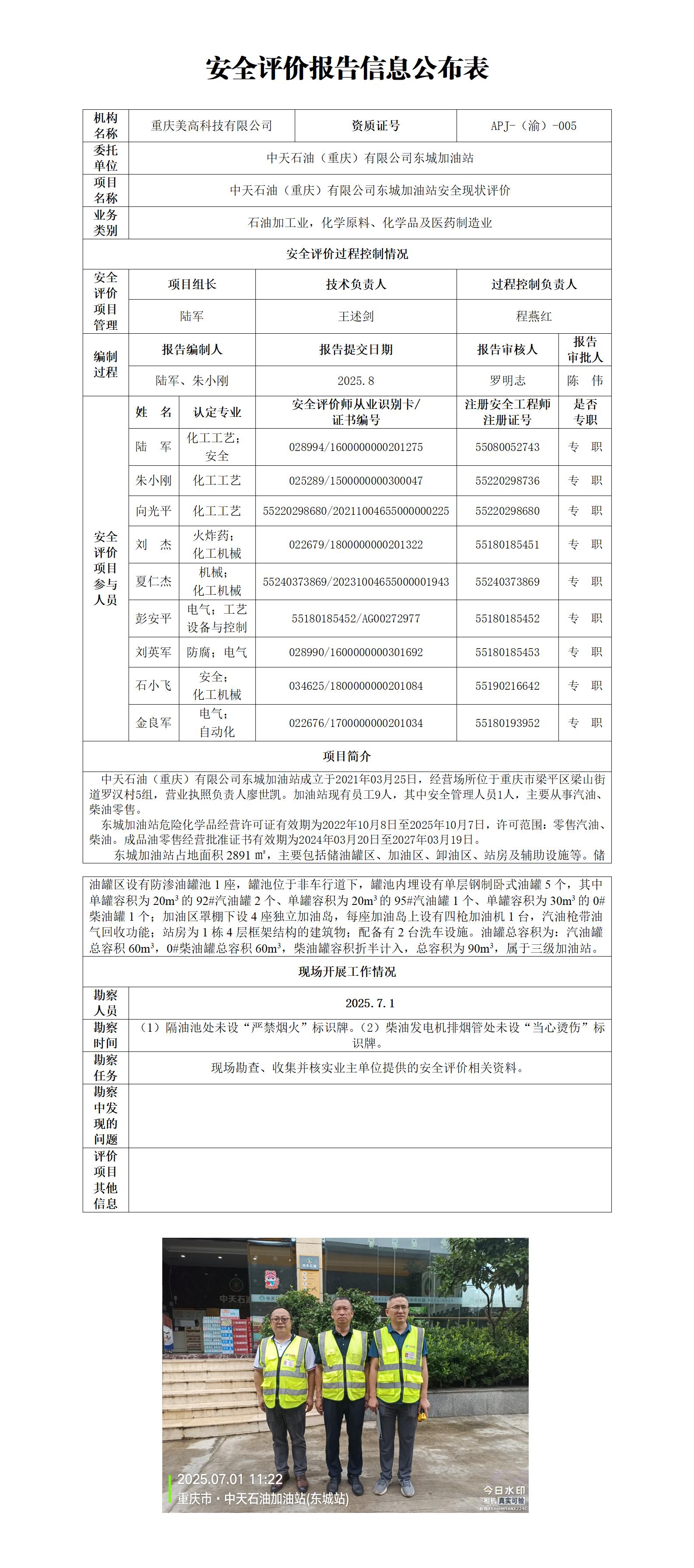 2025年3季度-中天石油(重庆)有限公司东城加油站安全现状评价