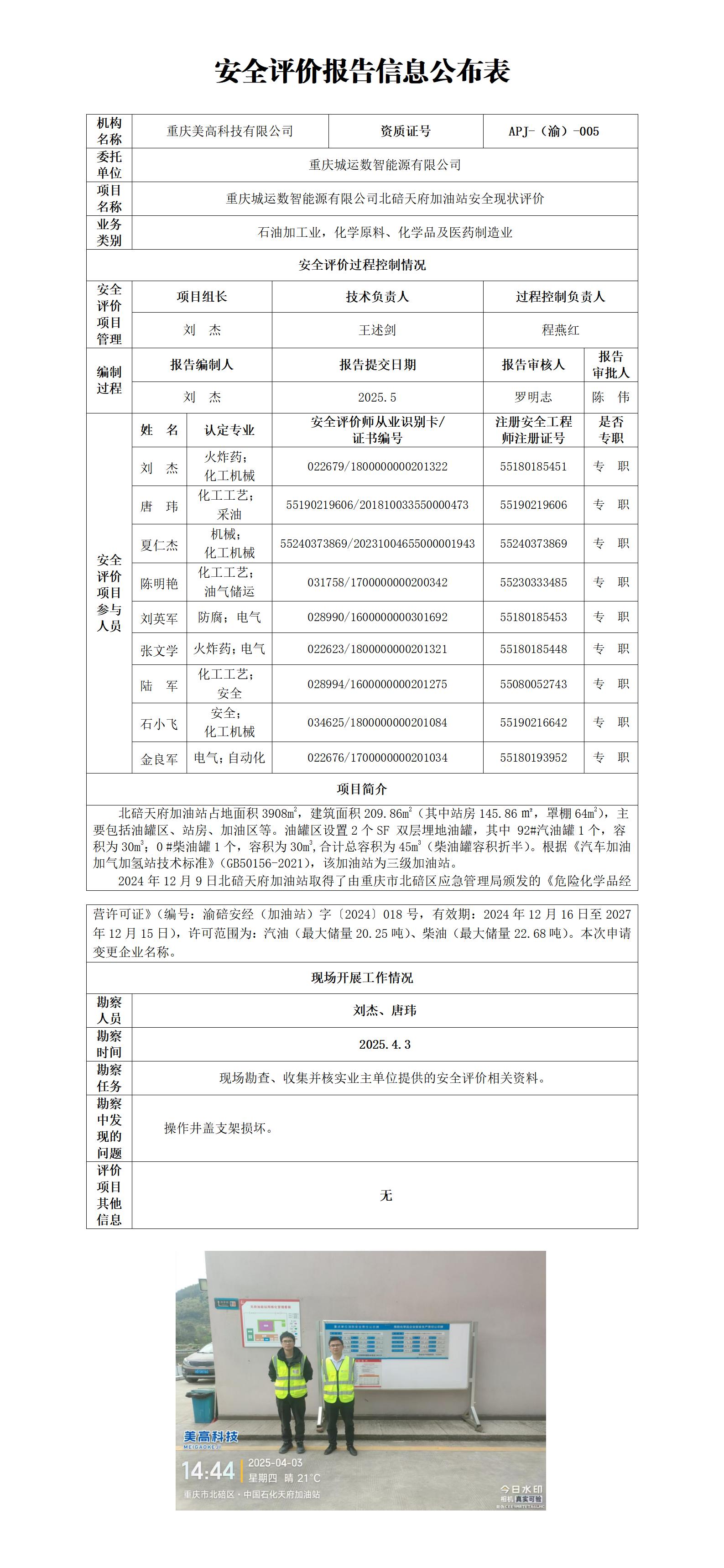 2025年2季度-重庆城运数智能源有限公司北碚天府加油站安全现状评价