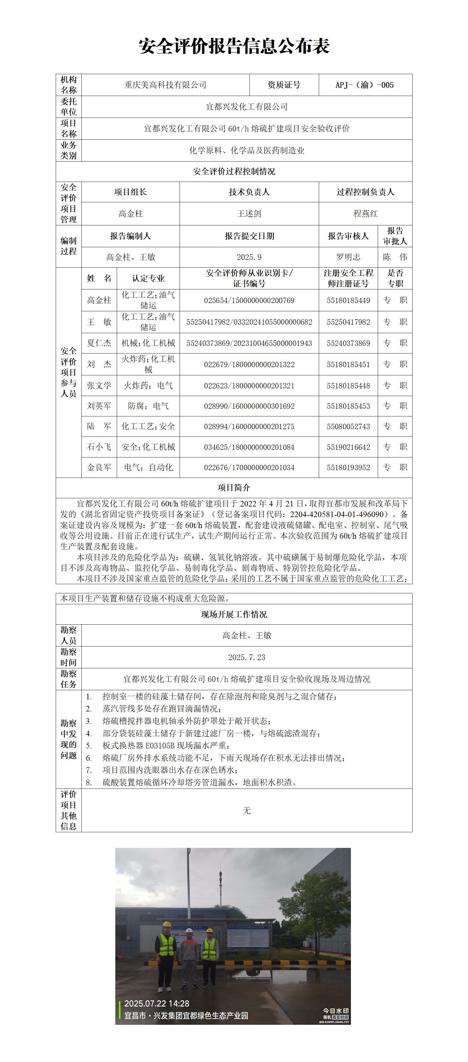 2025年3季度-宜都兴发化工有限公司60th熔硫扩建项目安全验收评价