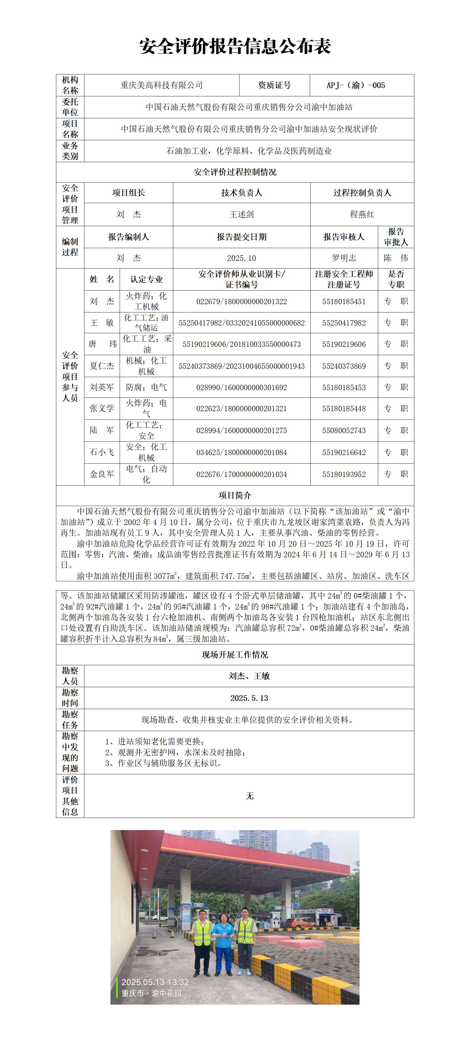 2025年4季度-中国石油天然气股份有限公司重庆销售分公司渝中加油站安全现状评价