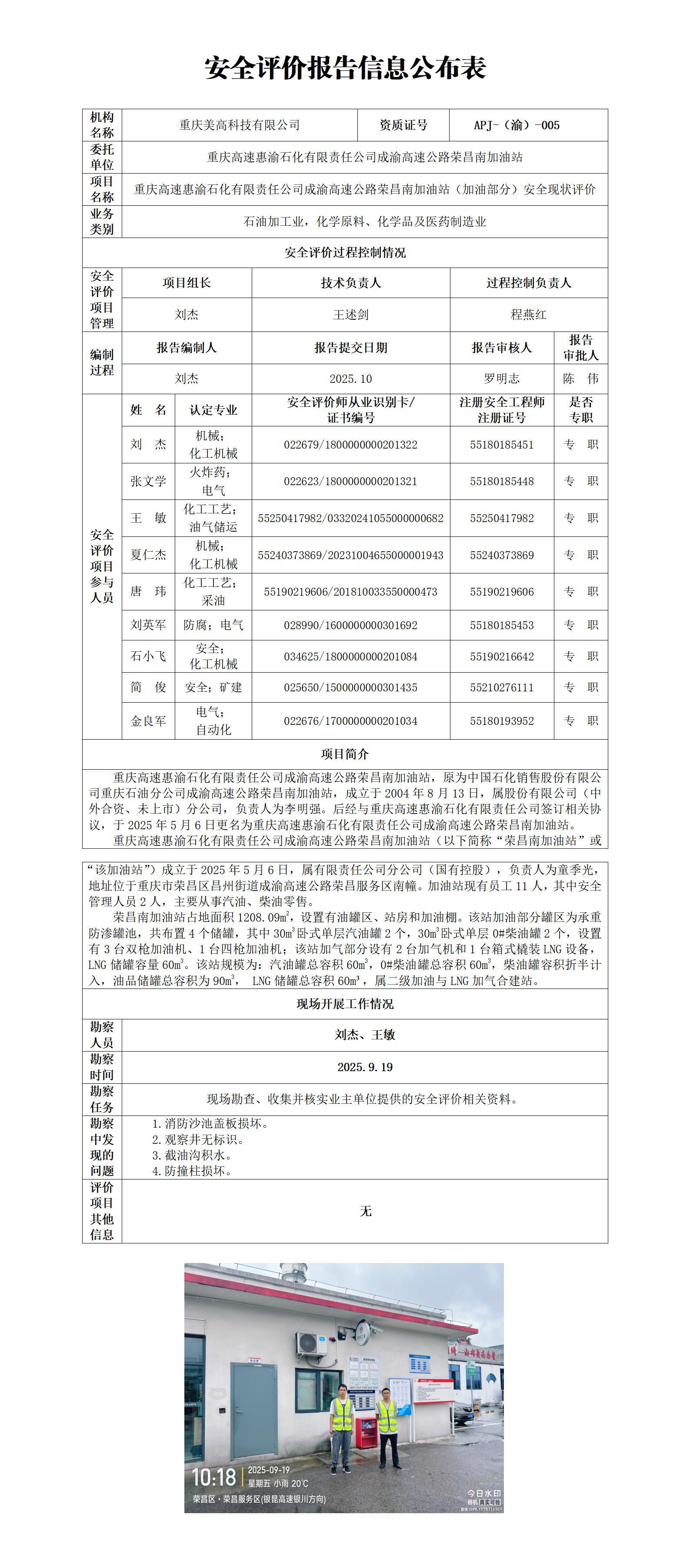 2025年4季度-重庆高速惠渝石化有限责任公司成渝高速公路荣昌南加油站(加油部分)安全现状评价