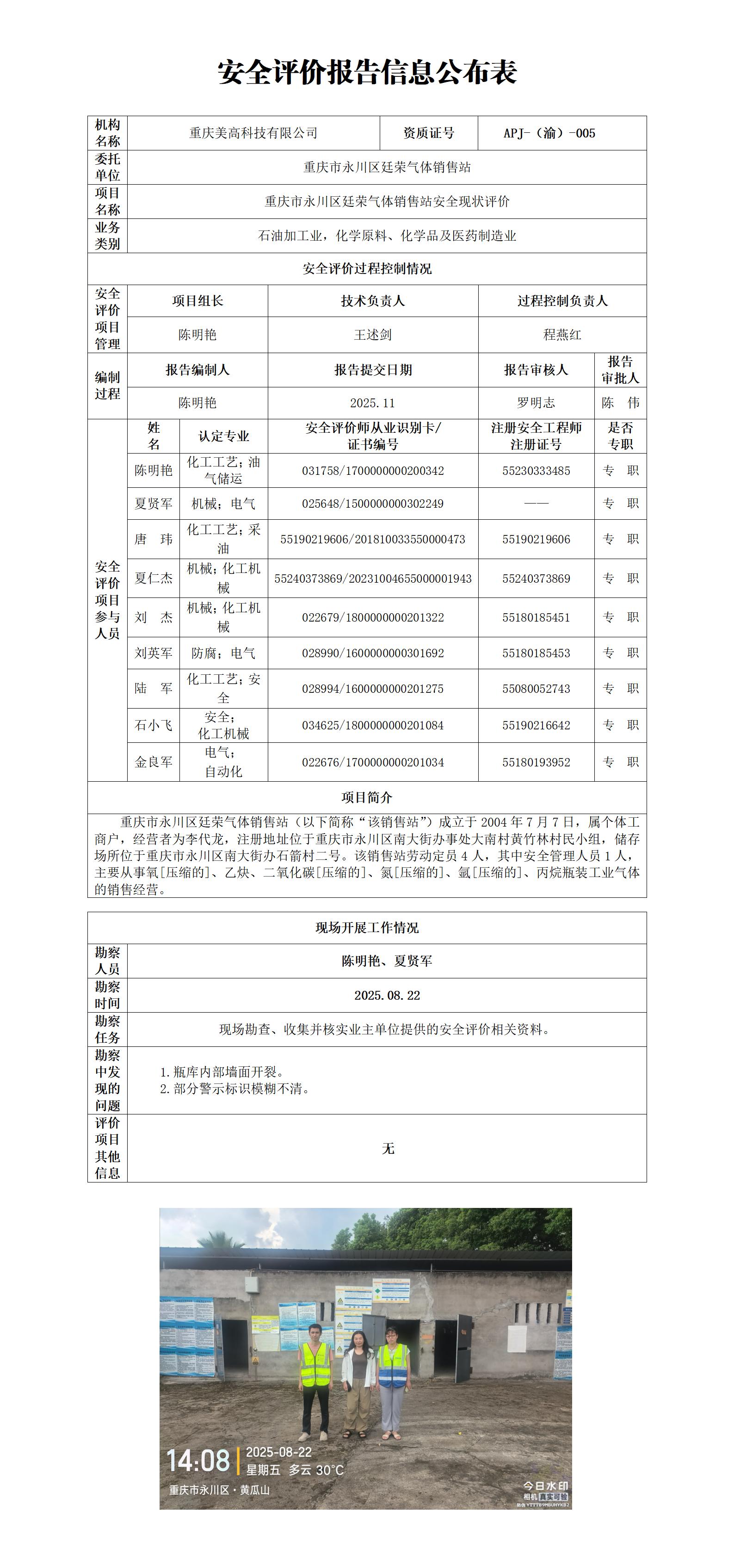 2025年4季度-重庆市永川区廷荣气体销售站安全现状评价