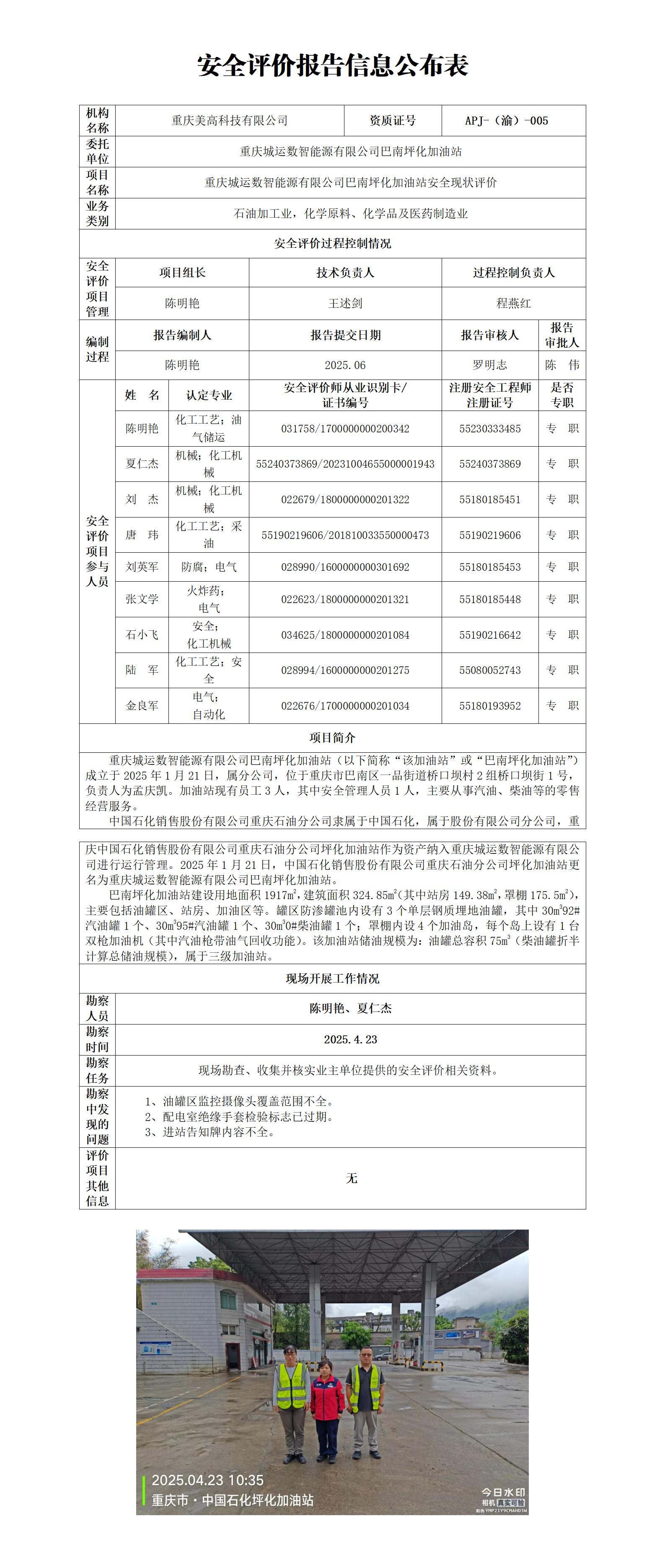 2025年2季度-重庆城运数智能源有限公司巴南坪化加油站安全现状评价