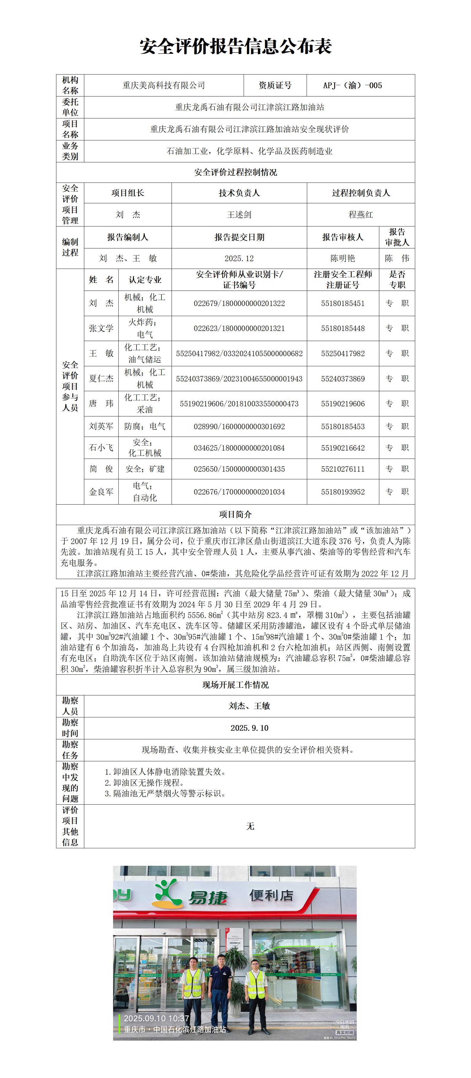 2025年4季度-重庆龙禹石油有限公司江津滨江路加油站安全现状评价