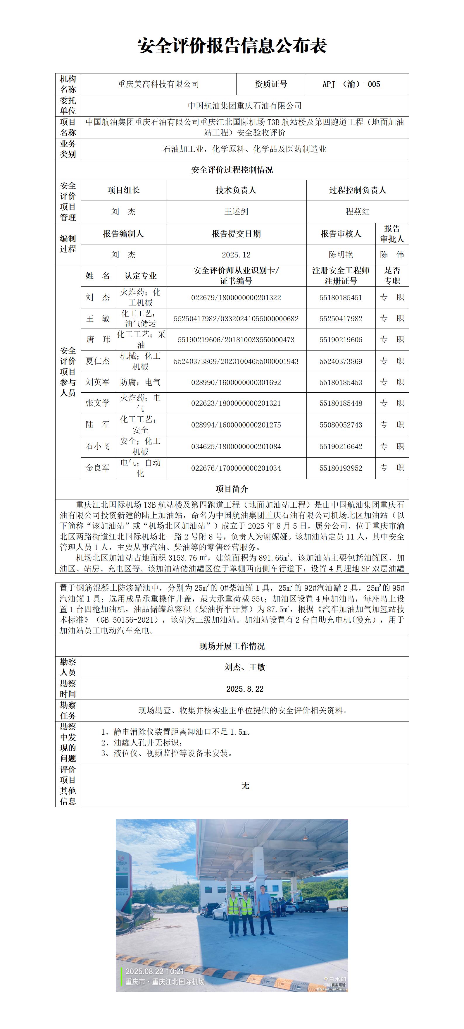 2025年4季度-中国航油集团重庆石油有限公司重庆江北国际机场T3B航站楼及第四跑道工程(地面加油站工程)安全验收评价