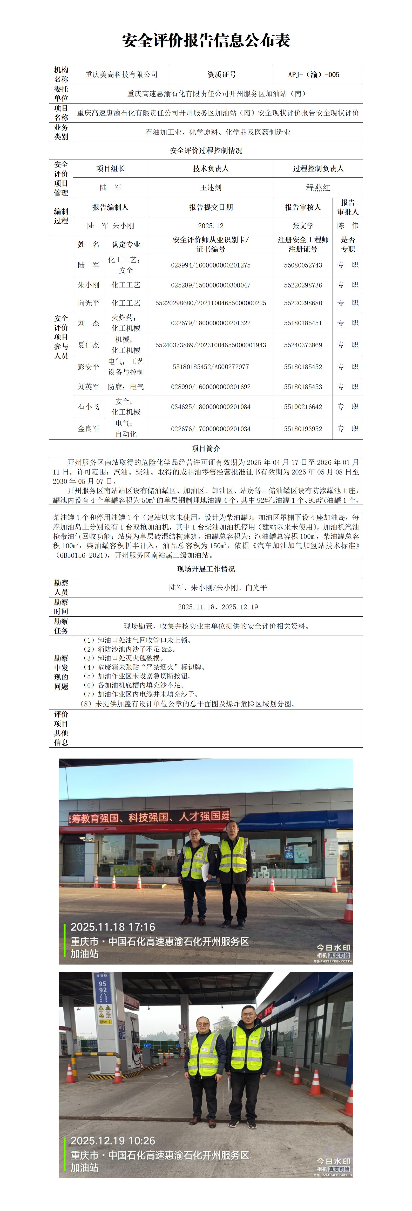 2025年4季度-重庆高速惠渝石化有限责任公司开州服务区加油站(南)安全现状评价