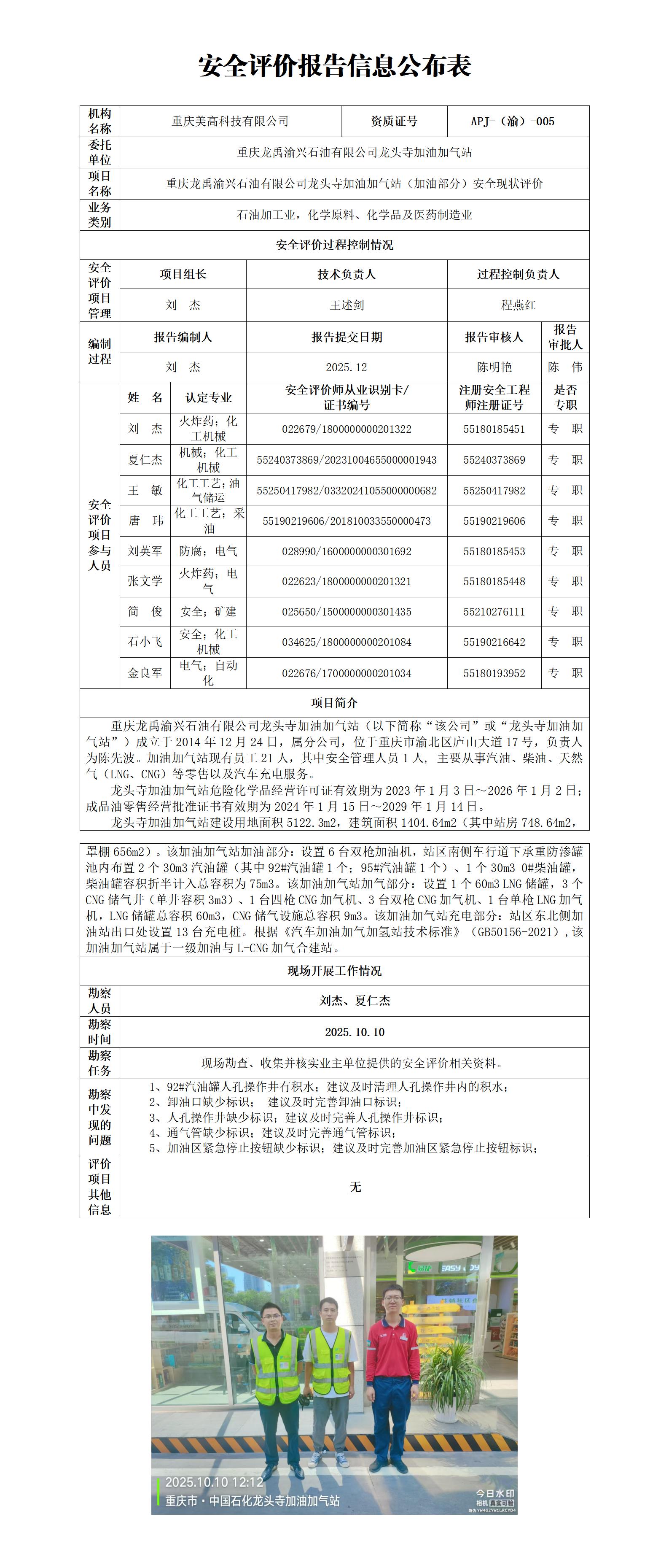 2025年4季度-重庆龙禹渝兴石油有限公司龙头寺加油加气站(加油部分)安全现状评价