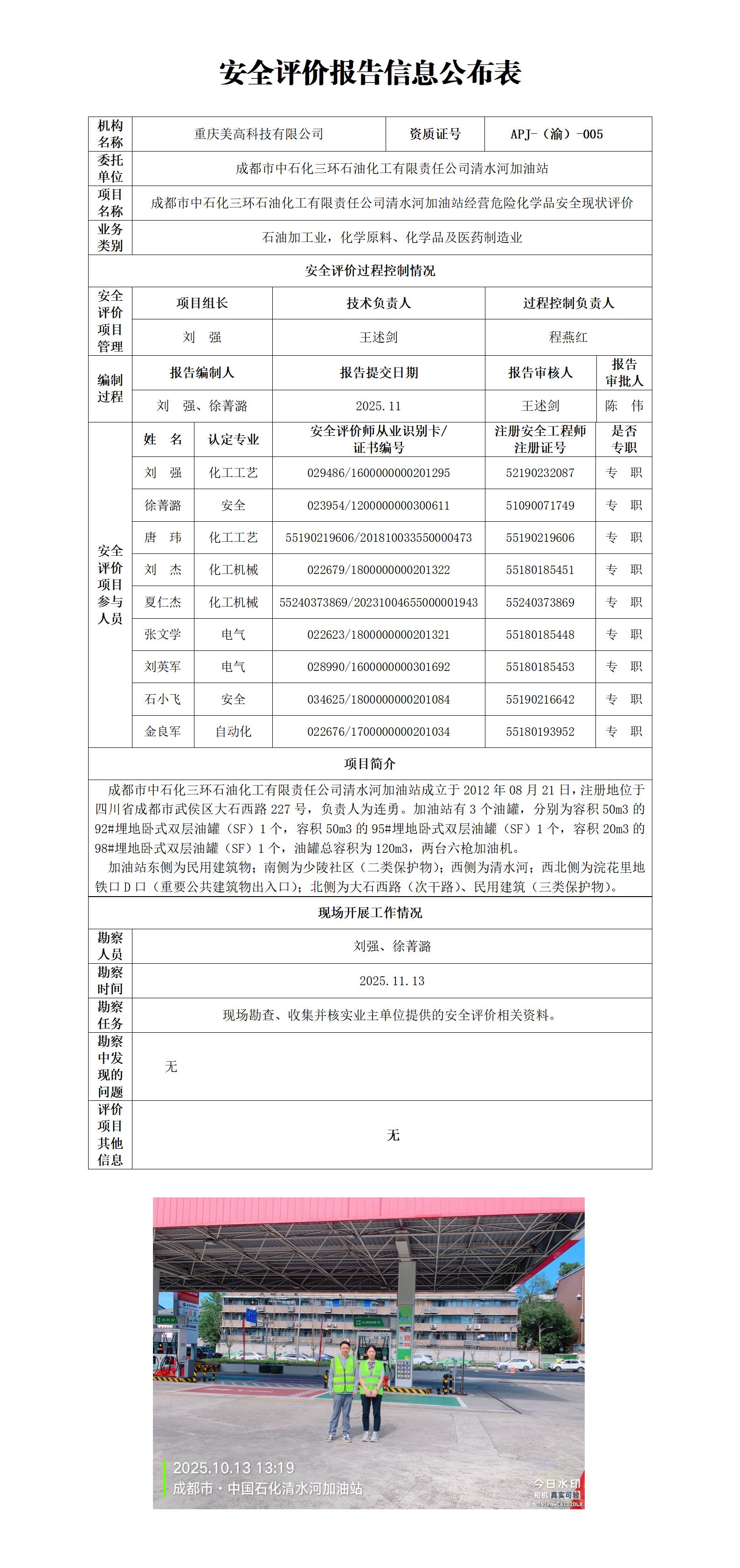 2025年4季度-成都市中石化三环石油化工有限责任公司清水河加油站经营危险化学品安全现状评价