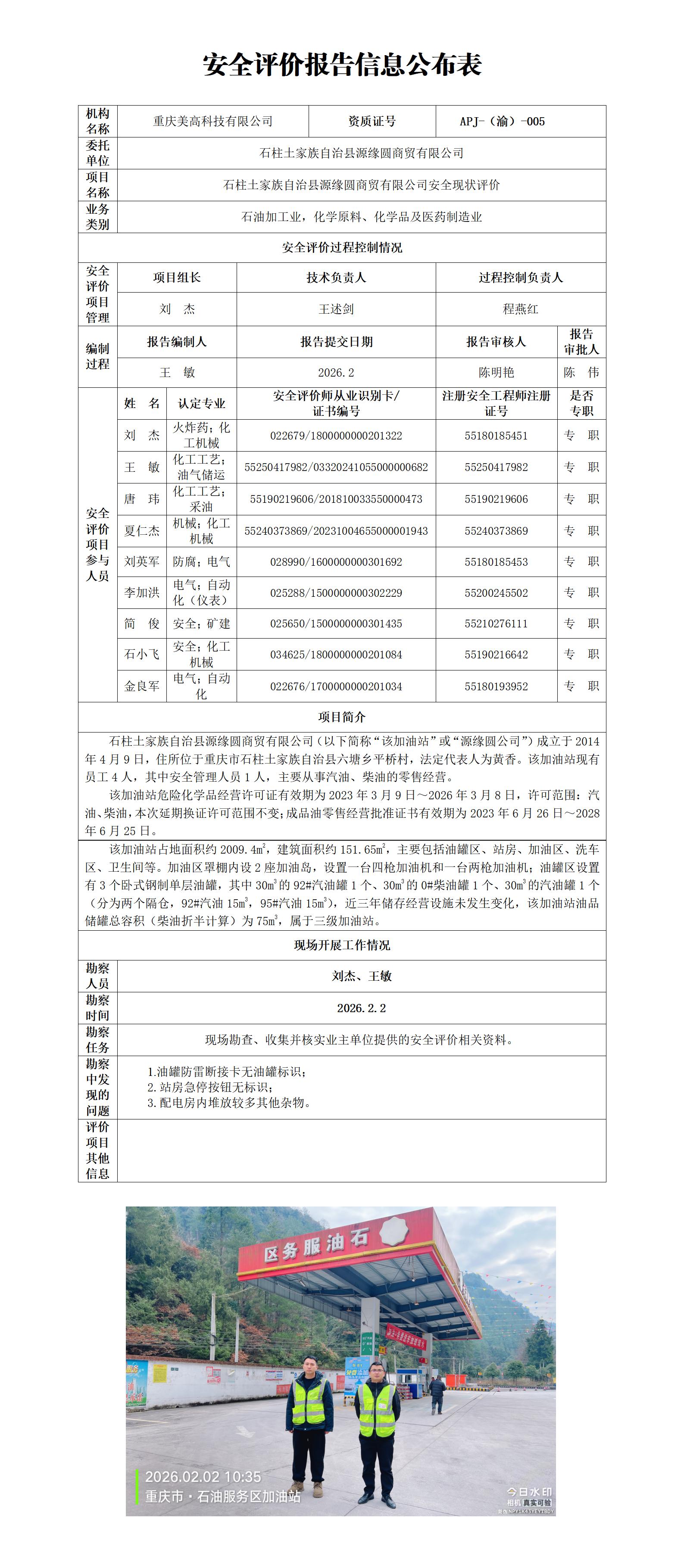 2026年1季度-石柱土家族自治县源缘圆商贸有限公司安全现状评价