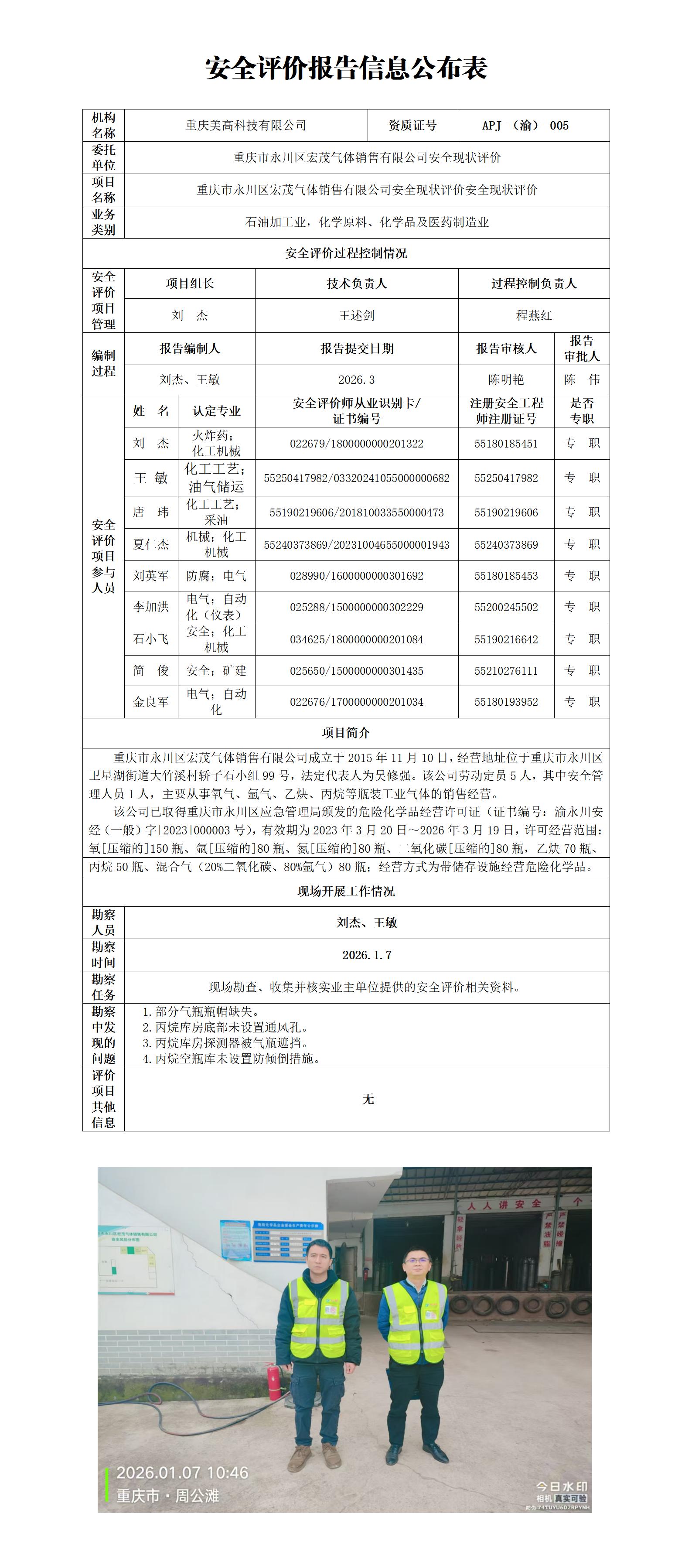 2026年1季度-重庆市永川区宏茂气体销售有限公司安全现状评价