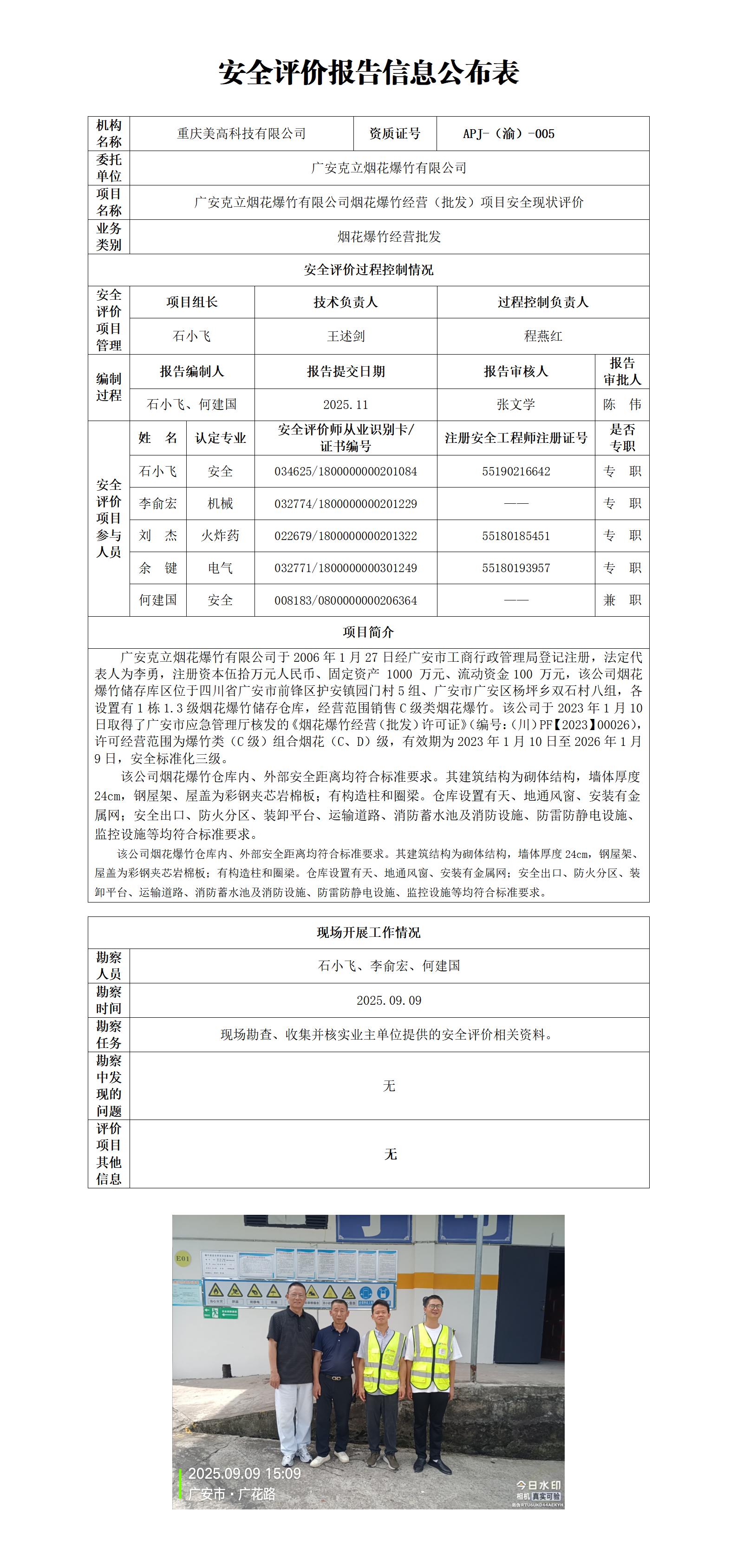 2025年4季度-广安克立烟花爆竹有限公司烟花爆竹经营(批发)项目安全现状评价