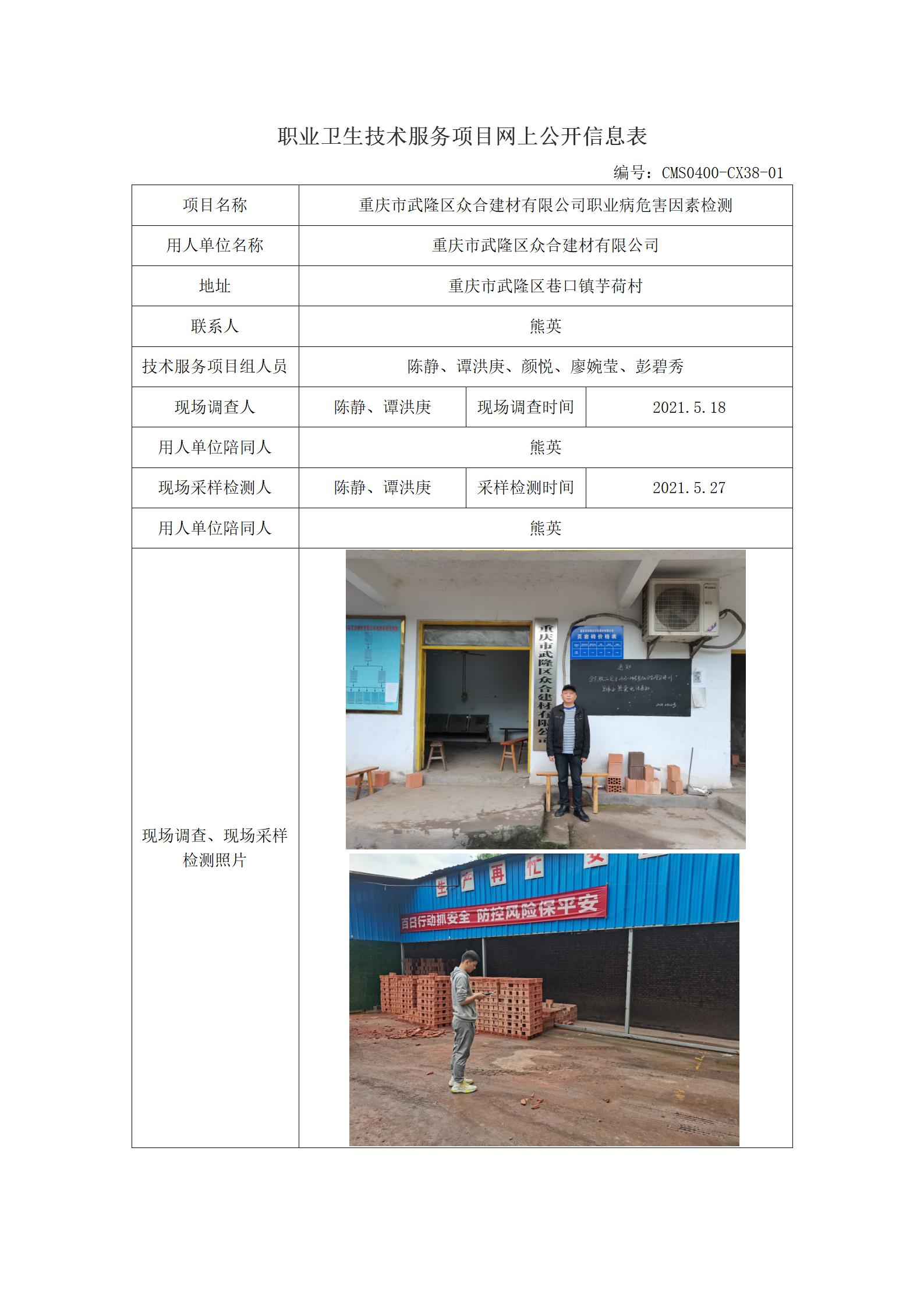 2021年-重庆市武隆区众合建材有限公司职业病危害因素检测