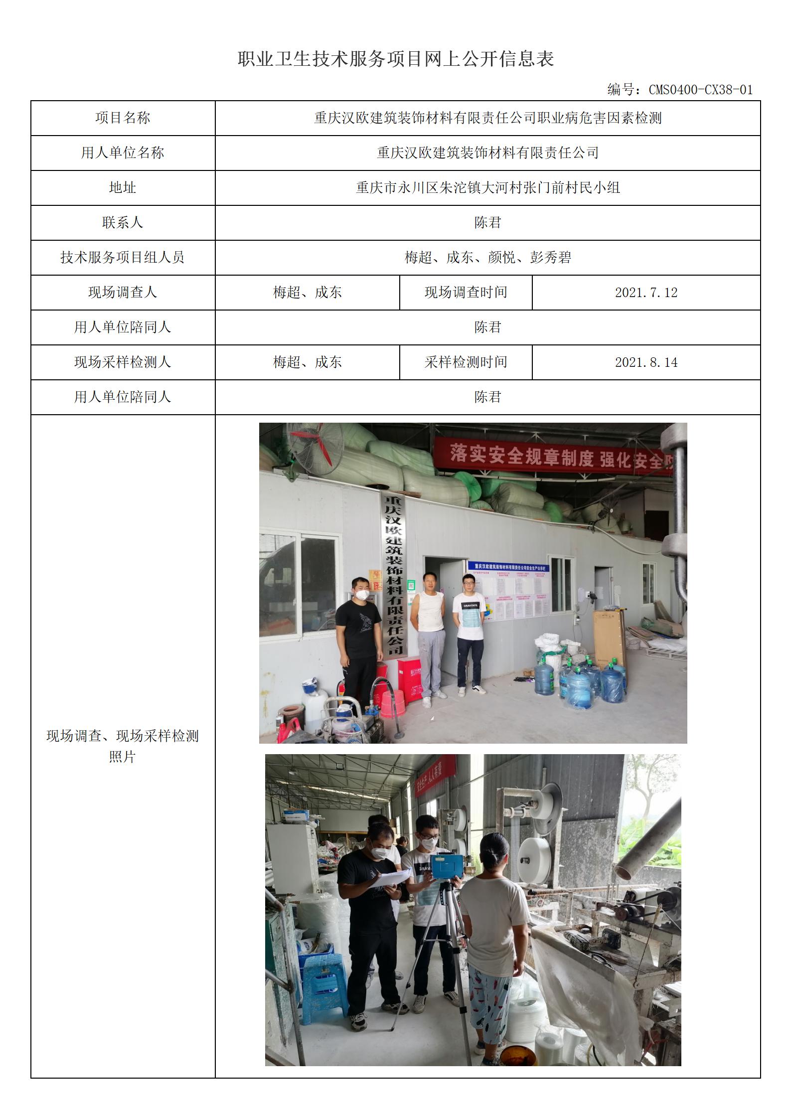 2021年-重庆汉欧建筑装饰材料有限责任公司职业病危害因素检测