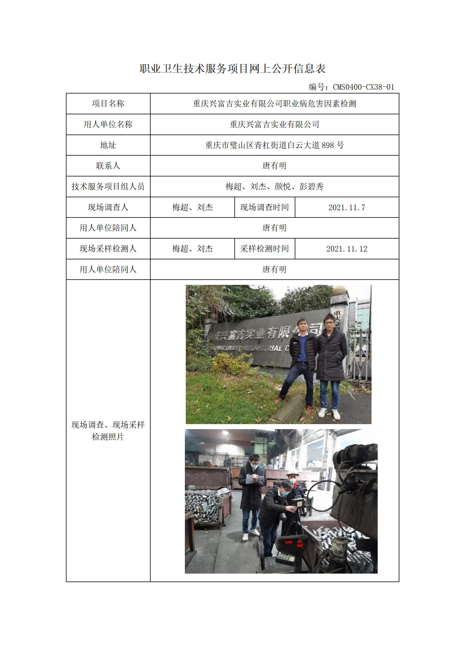 2021年-重庆兴富吉实业有限公司职业病危害因素检测