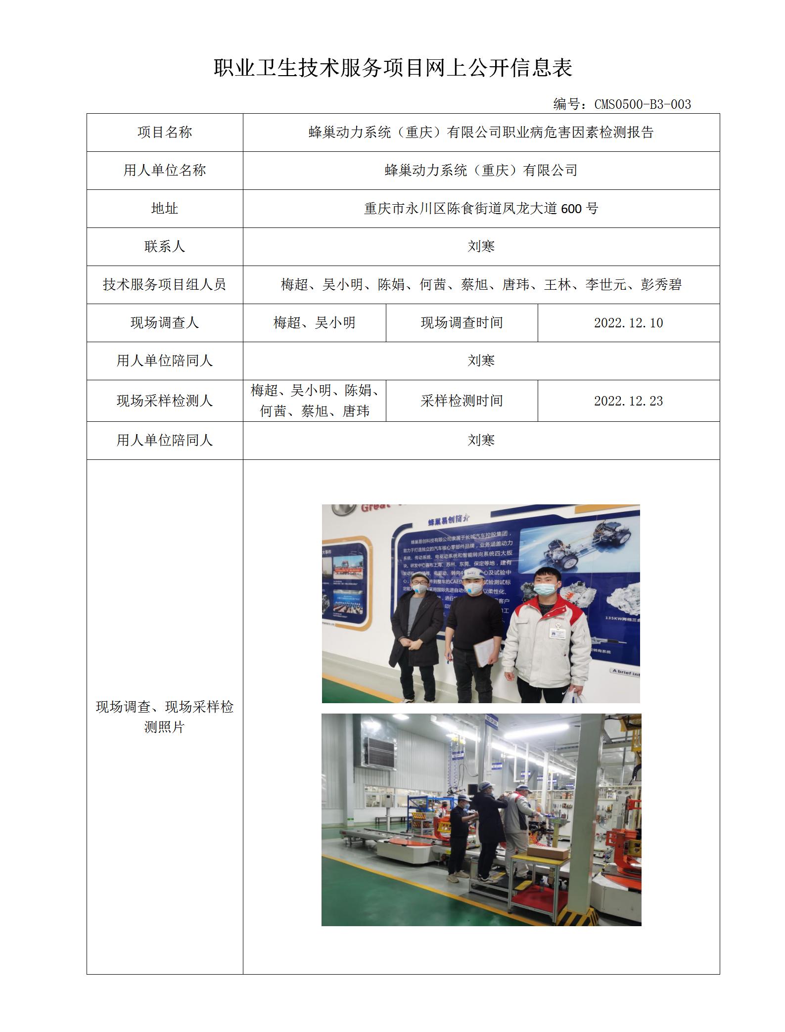 2022年-蜂巢动力系统(重庆)有限公司职业病危害因素检测