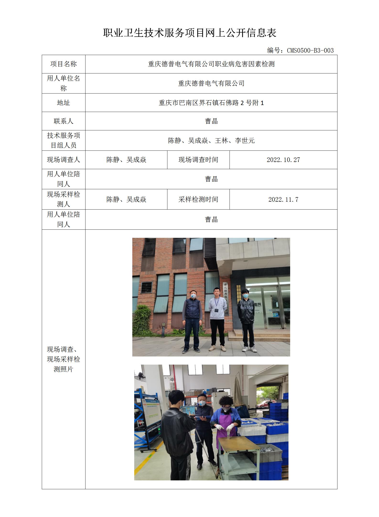 2022年-重庆德普电气有限公司职业病危害因素检测
