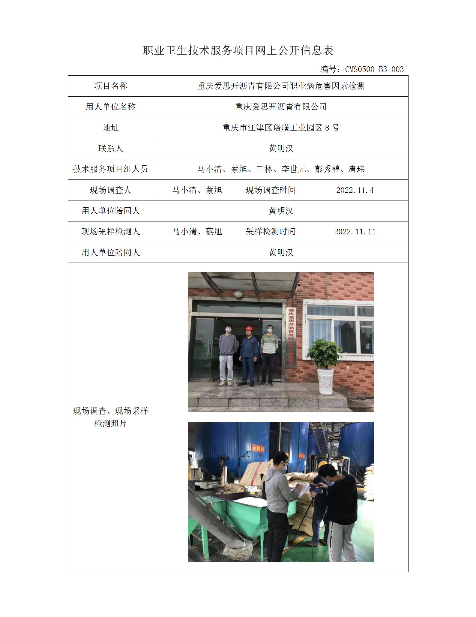 2022年-重庆爱思开沥青有限公司职业病危害因素检测