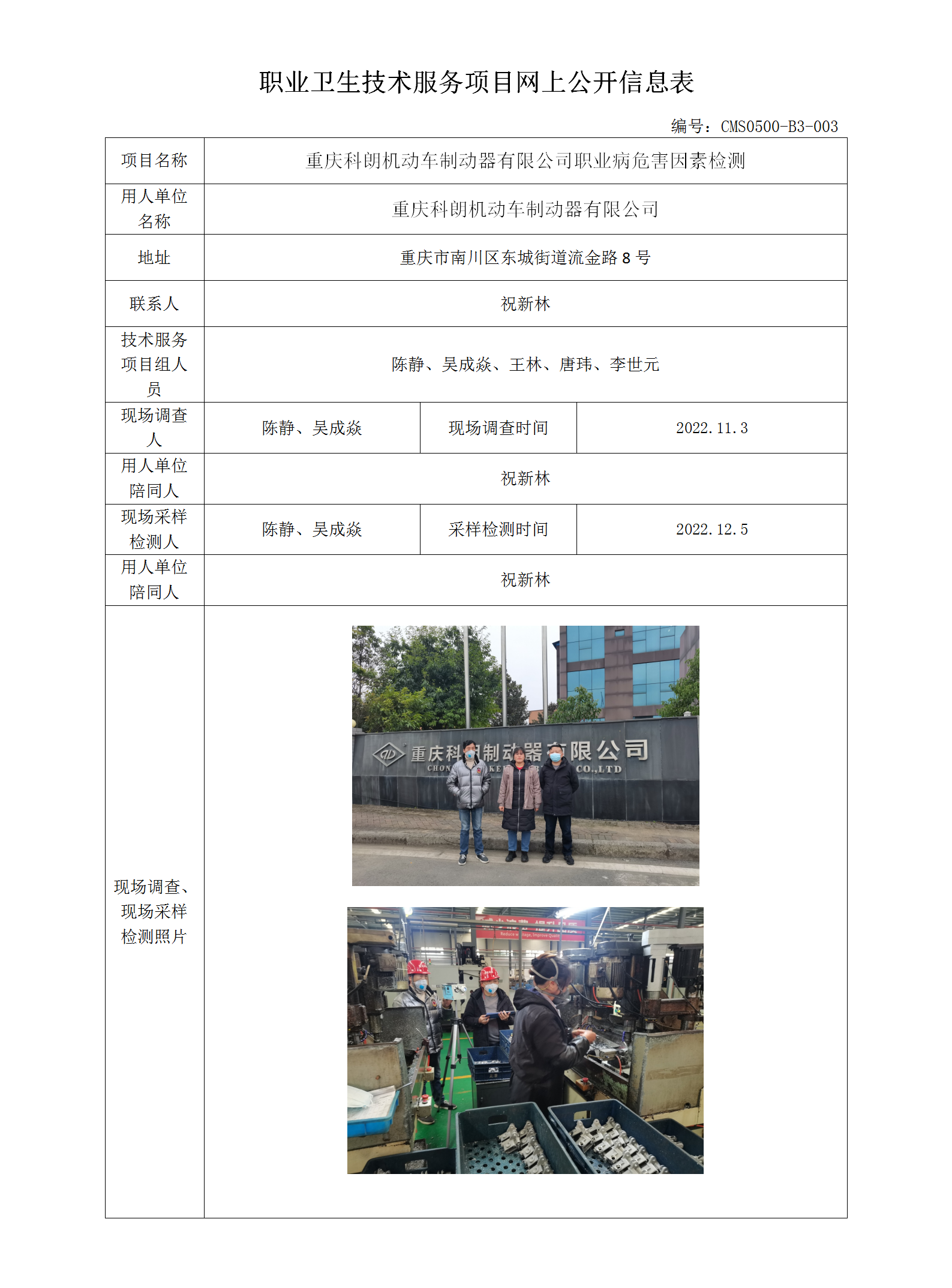 2023年-重庆科朗机动车制动器有限公司职业病危害因素检测