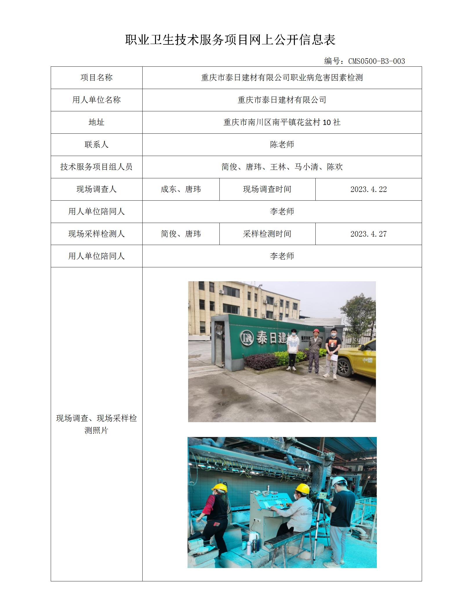 2023年-重庆市泰日建材有限公司职业病危害因素检测