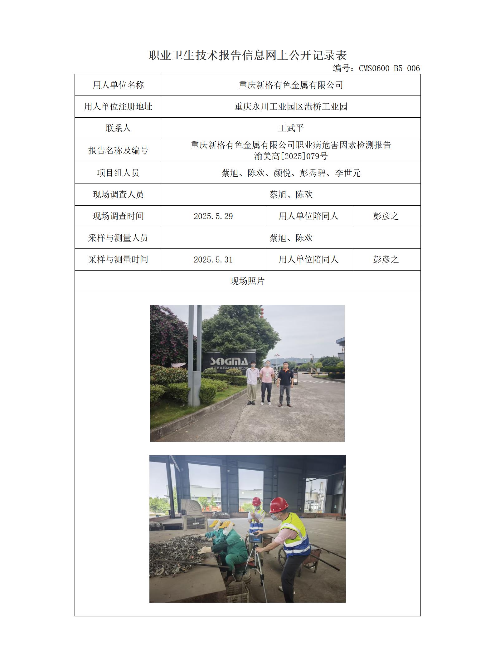 2025年-重庆新格有色金属有限公司职业病危害因素检测