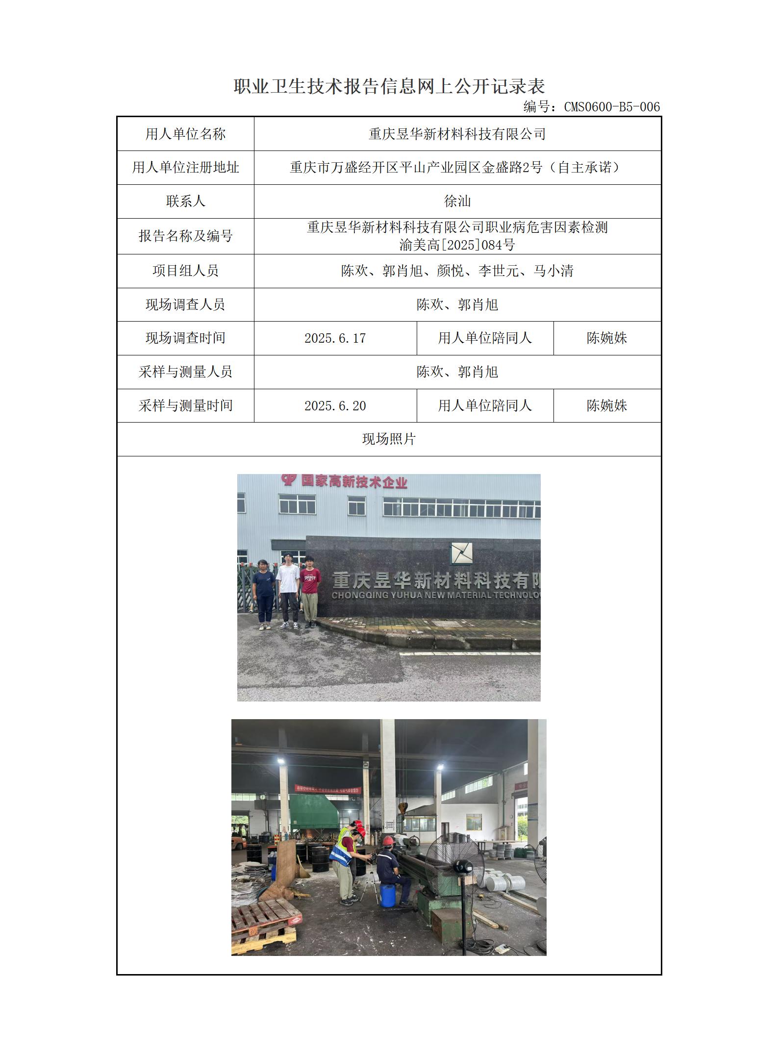 2025年-重庆昱华新材料科技有限公司职业病危害因素检测