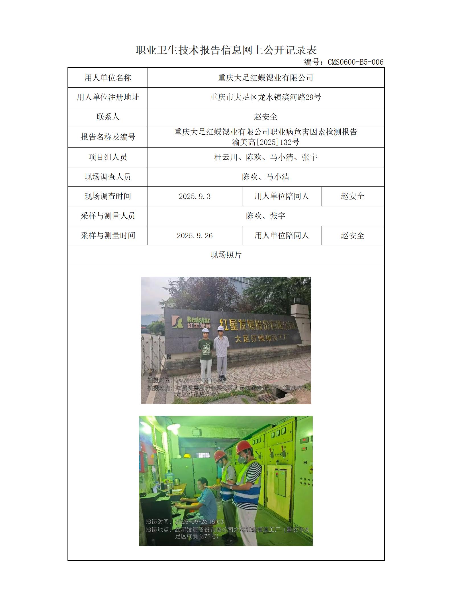2025年-重庆大足红蝶锶业有限公司职业病危害因素检测