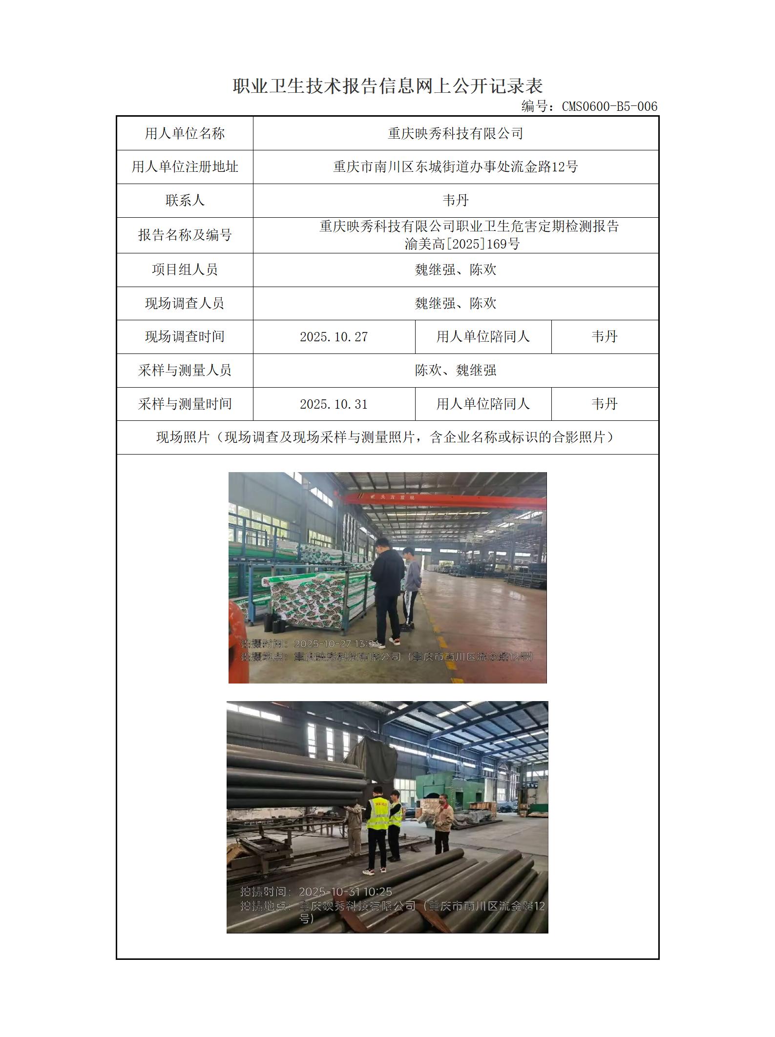 2025年-重庆映秀科技有限公司职业病危害因素检测