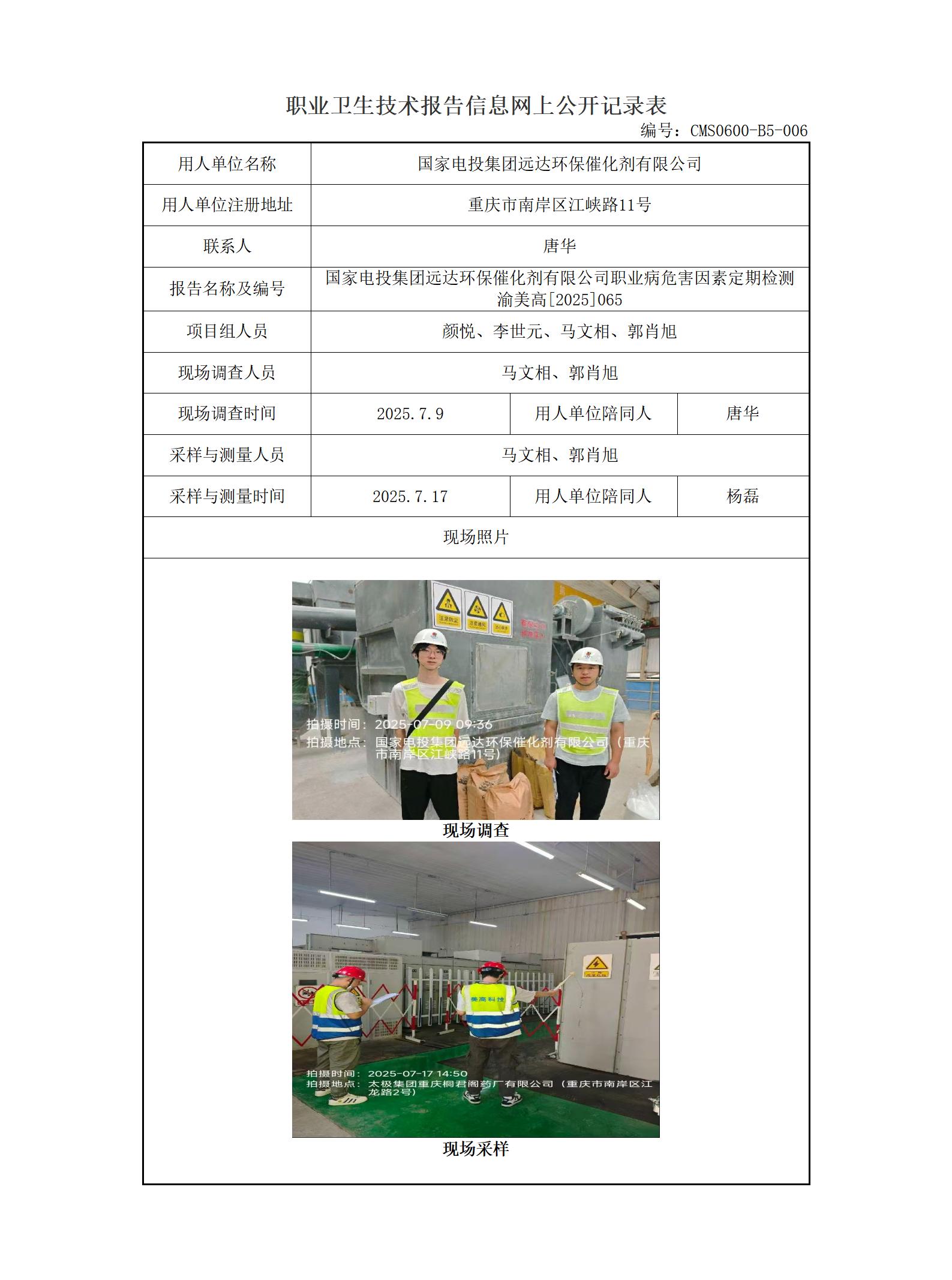 2025年-国家电投集团远达环保催化剂有限公司职业病危害因素检测
