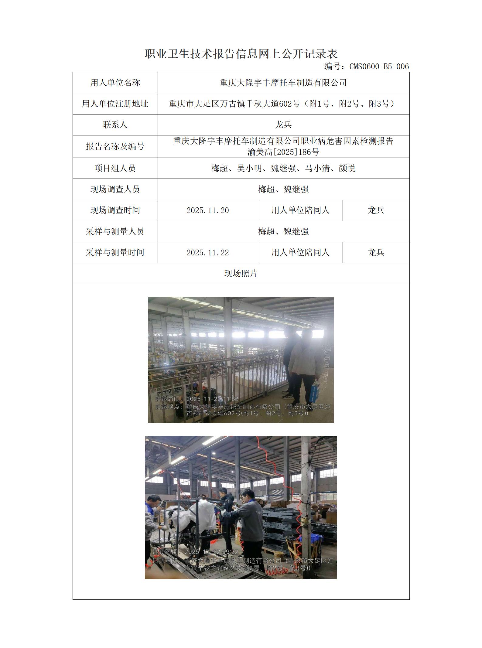 2025年-重庆大隆宇丰摩托车制造有限公司职业病危害因素检测