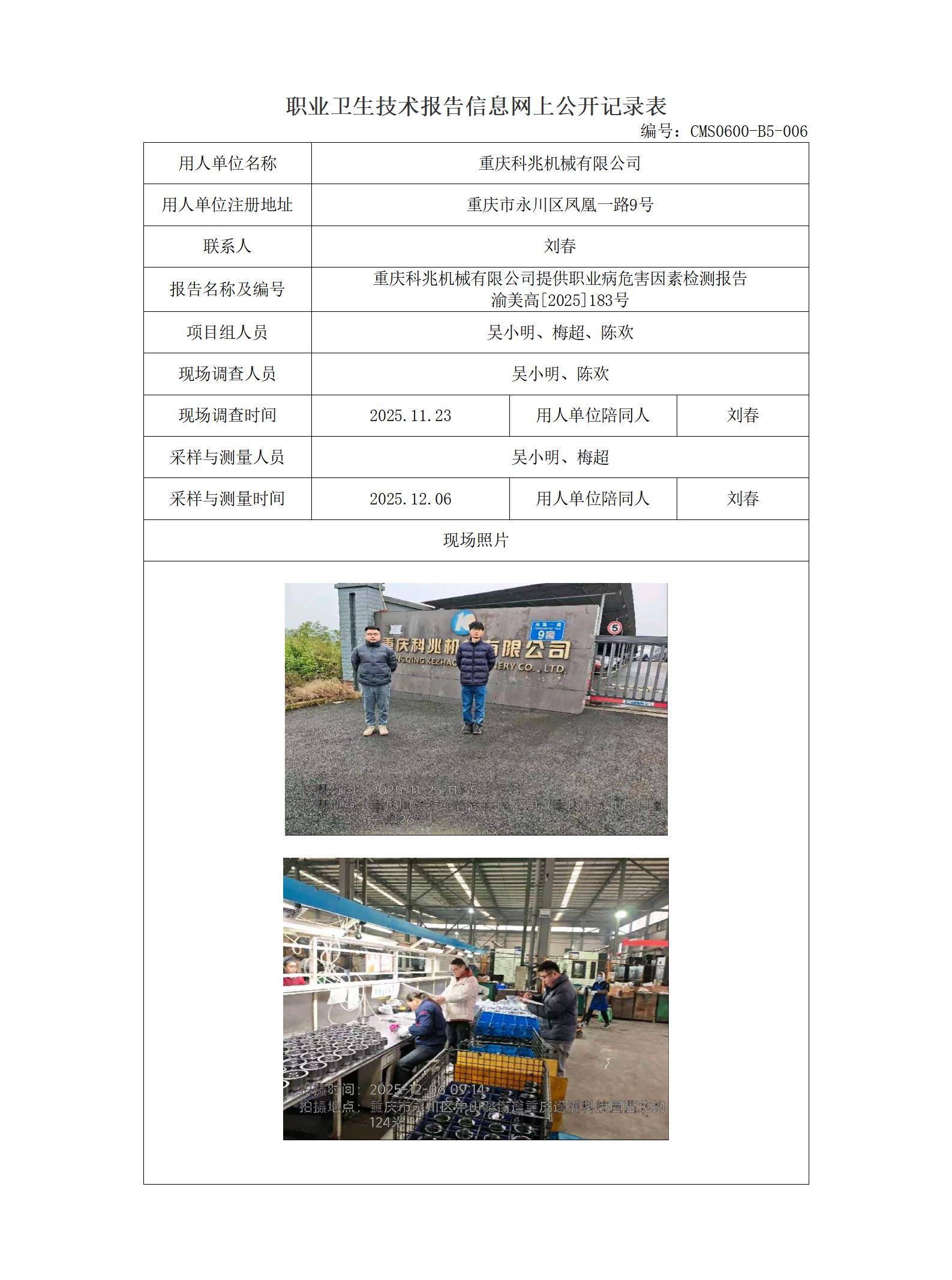 2025年-重庆科兆机械有限公司职业病危害因素检测