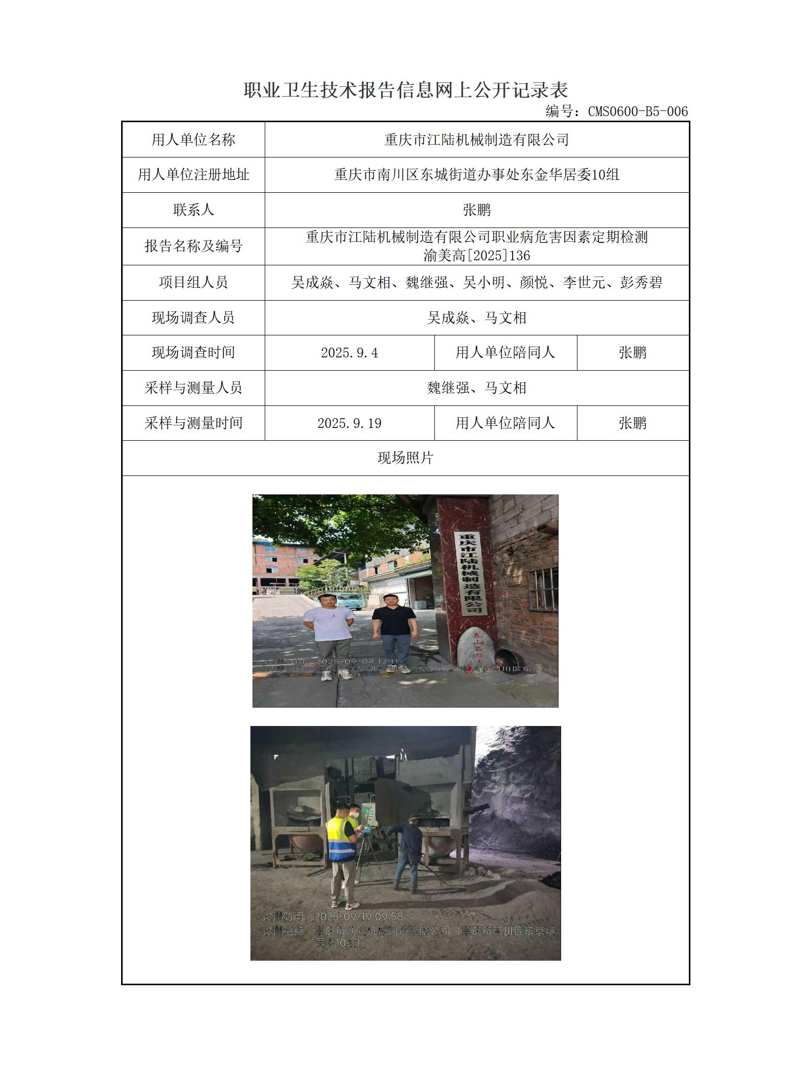 2025年-重庆市江陆机械制造有限公司职业病危害因素检测