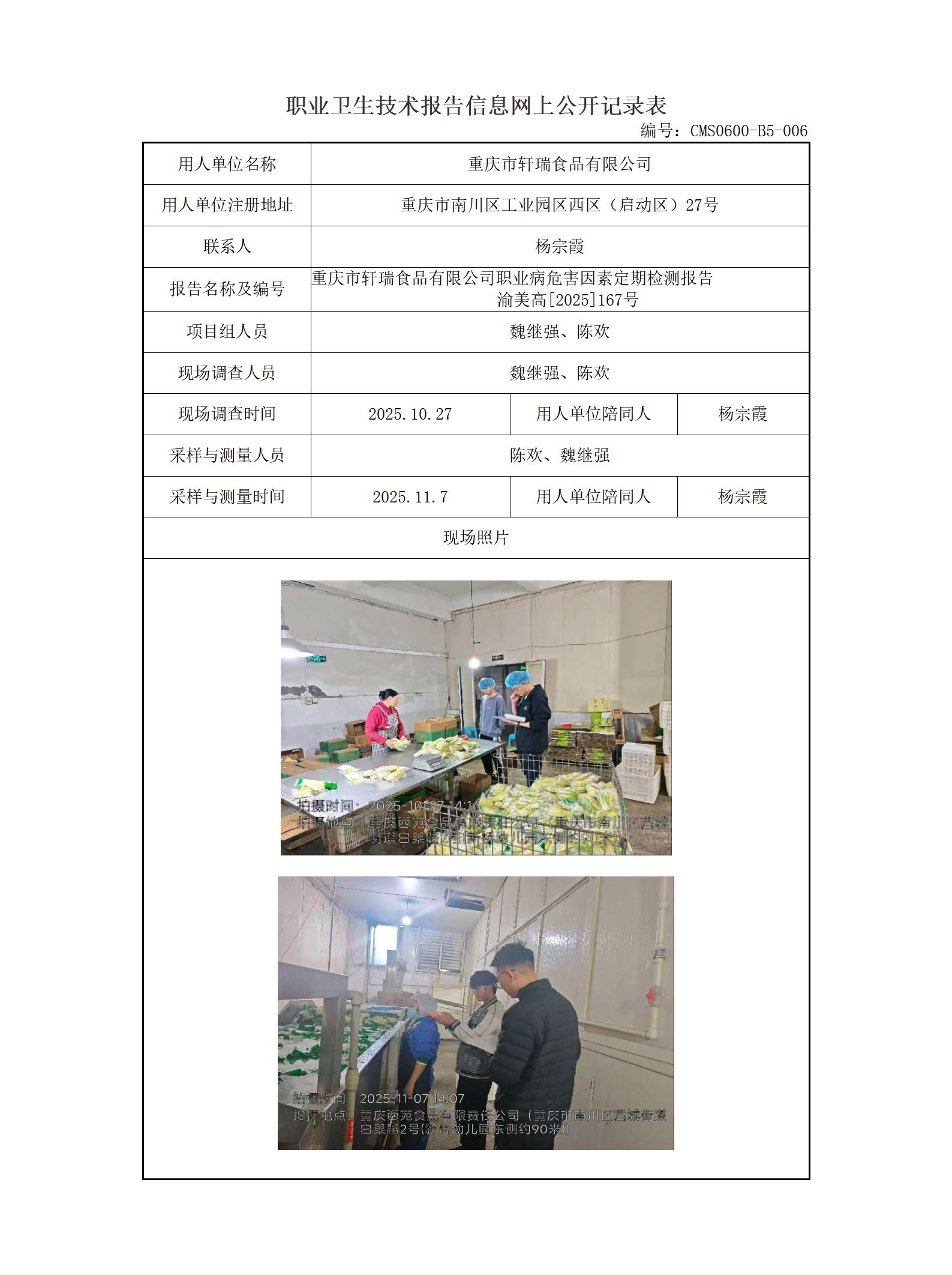 2025年-重庆市轩瑞食品有限公司职业病危害因素检测