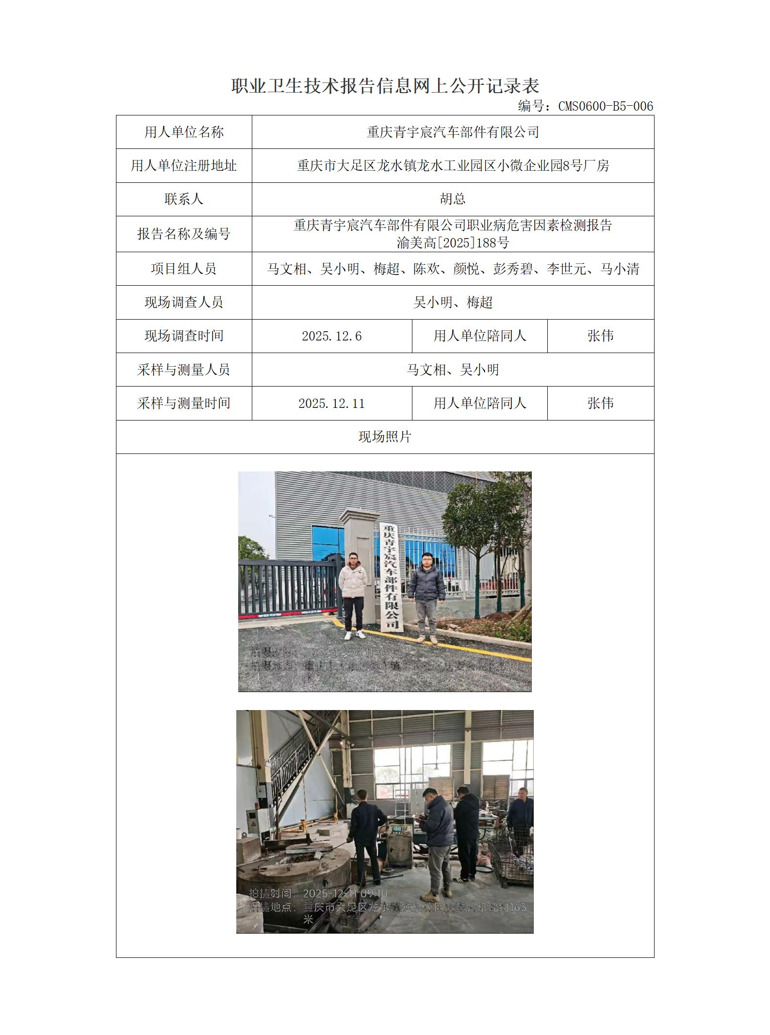 2025年-重庆青宇宸汽车部件有限公司职业病危害因素检测
