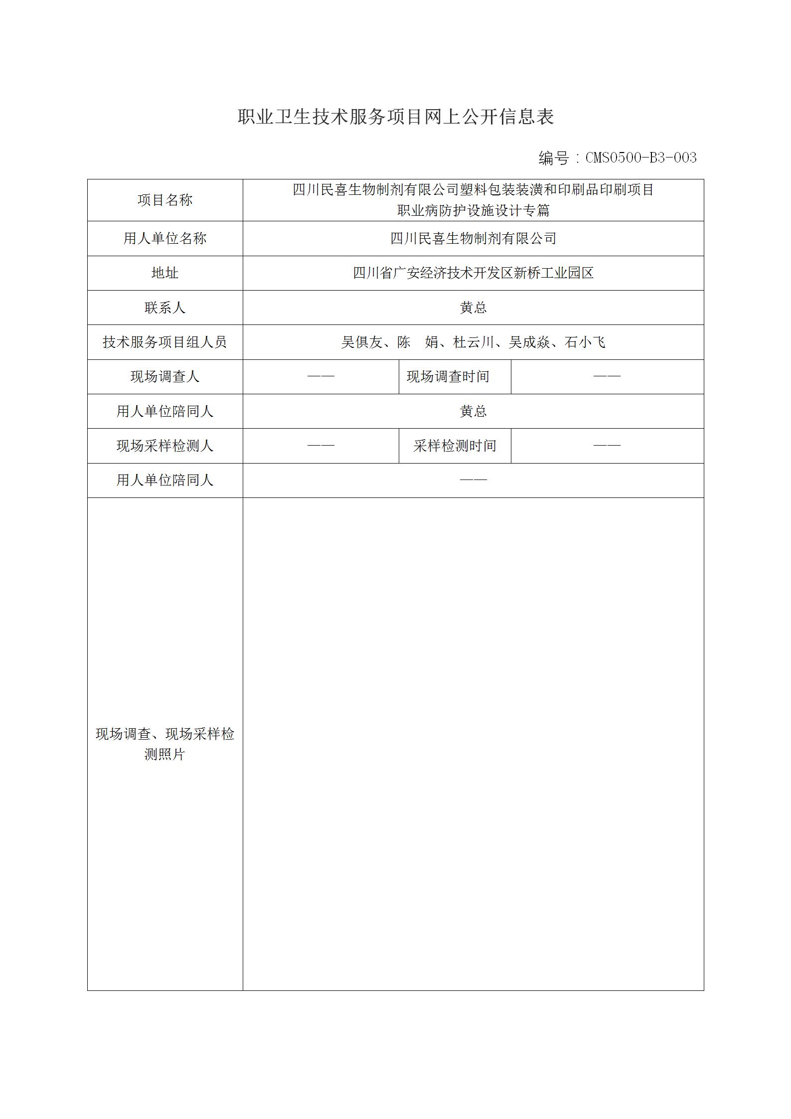 2022年-四川民喜生物制剂有限公司塑料包装装潢和印刷品印刷项目职业病防护设施设计专篇