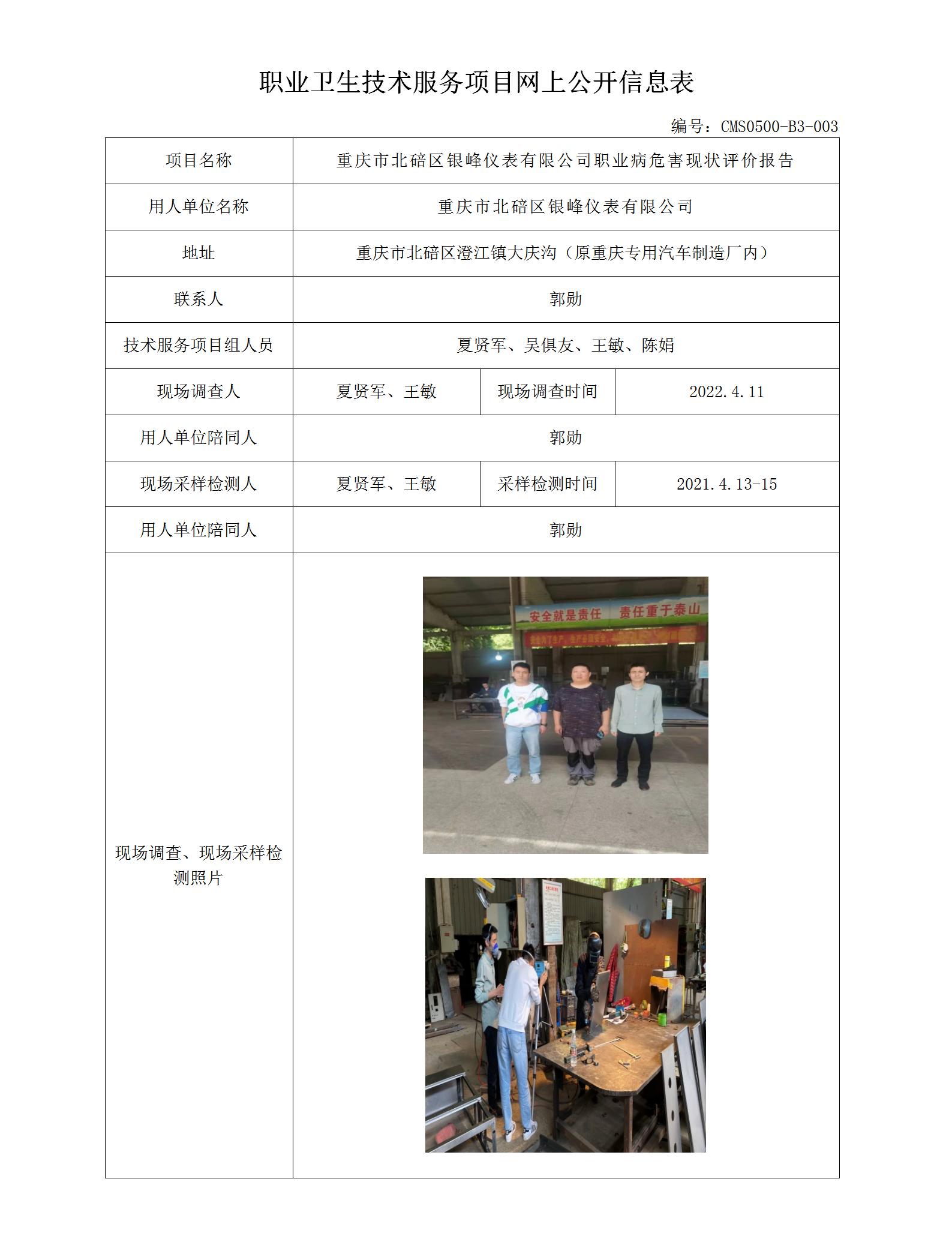2022年-重庆市北碚区银峰仪表有限公司职业病危害现状评价