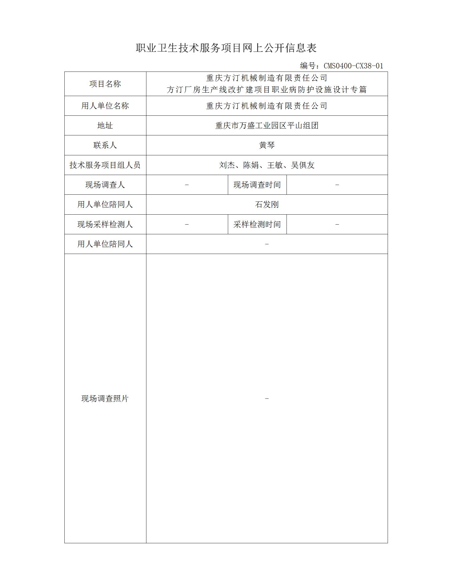 2024年-重庆方汀机械制造有限责任公司方汀厂房生产线改扩建项目职业病防护设施设计专篇
