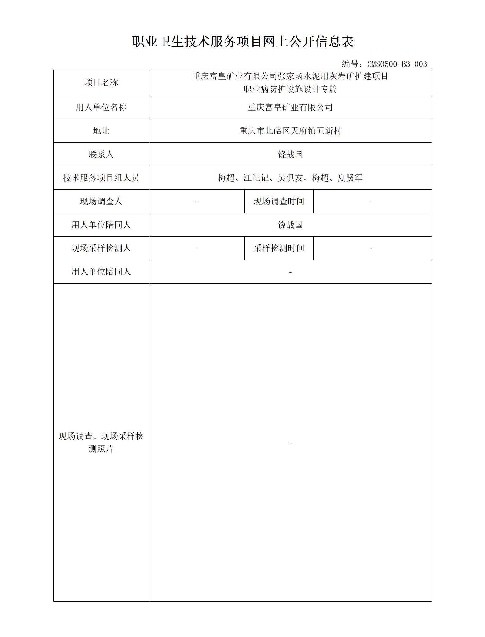 2024年-重庆富皇矿业有限公司张家函水泥用灰岩矿扩建项目职业病防护设施设计专篇