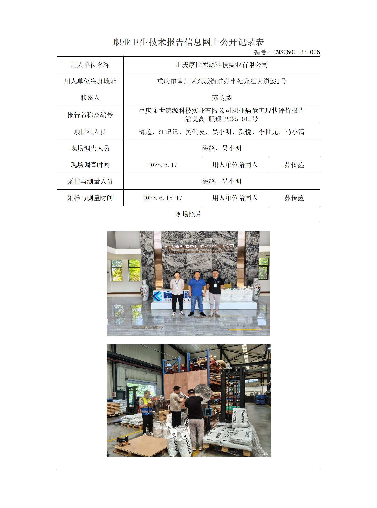 2025年-重庆康世德源科技实业有限公司职业病危害现状评价