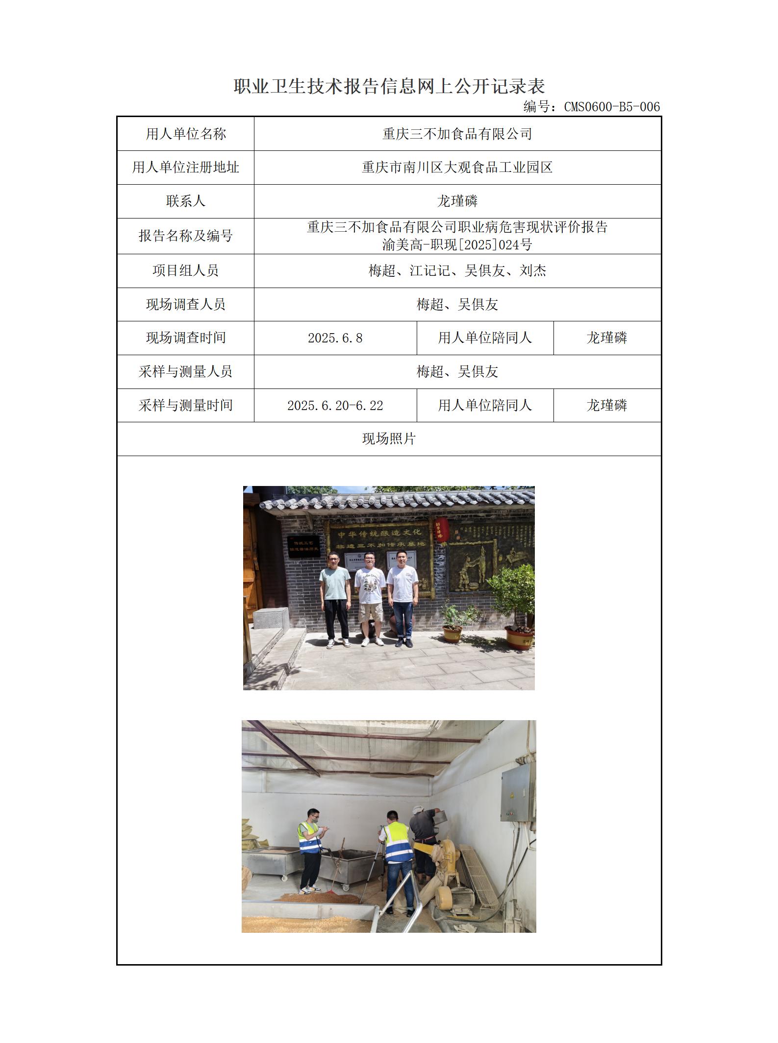 2025年-重庆三不加食品有限公司职业病危害现状评价