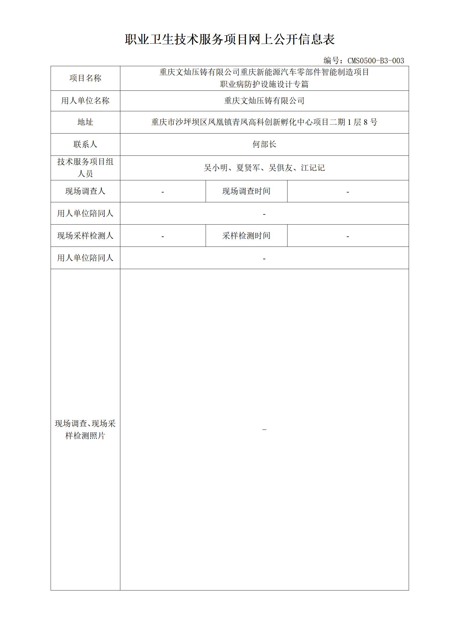2025年-重庆文灿压铸有限公司重庆新能源汽车零部件智能制造项目职业病防护设施设计专篇