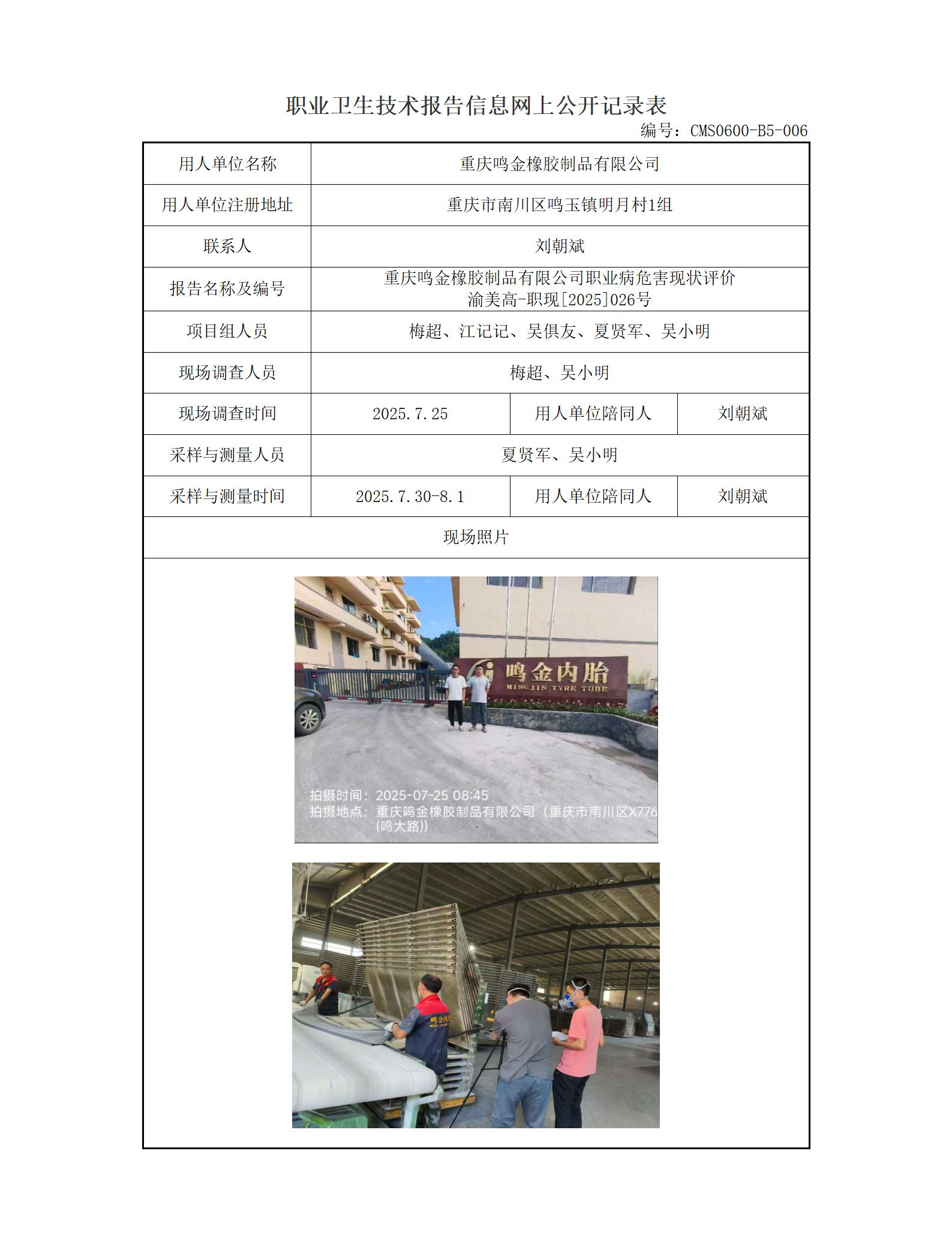 2025年-重庆鸣金橡胶制品有限公司职业病危害现状评价