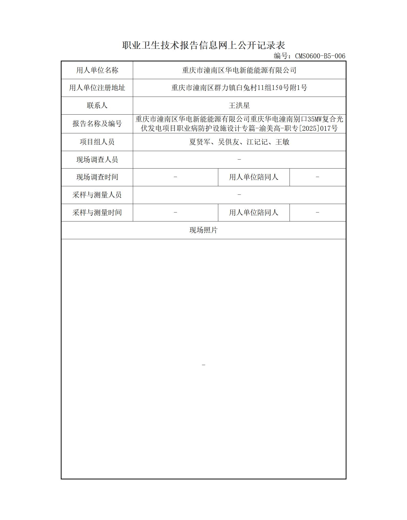 2025年-重庆市潼南区华电新能能源有限公司重庆华电潼南别口35MW复合光伏发电项目职业病防护设施设计专篇