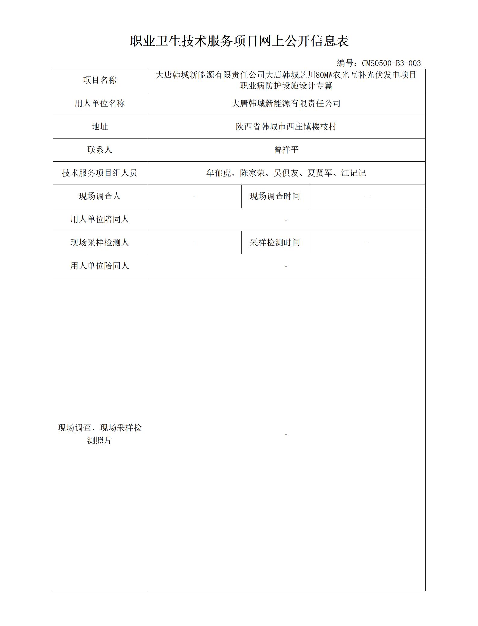 2025年-大唐韩城新能源有限责任公司大唐韩城芝川80MW农光互补光伏发电项目职业病防护设施设计专篇