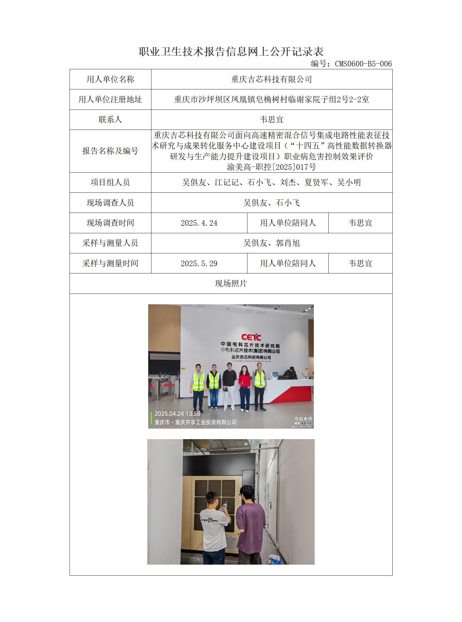 2025年-重庆吉芯科技有限公司面向高速精密混合信号集成电路性能表征技术研究与成果转化服务中心建设项目(“十四五”高性能数据转换器研发与生产能