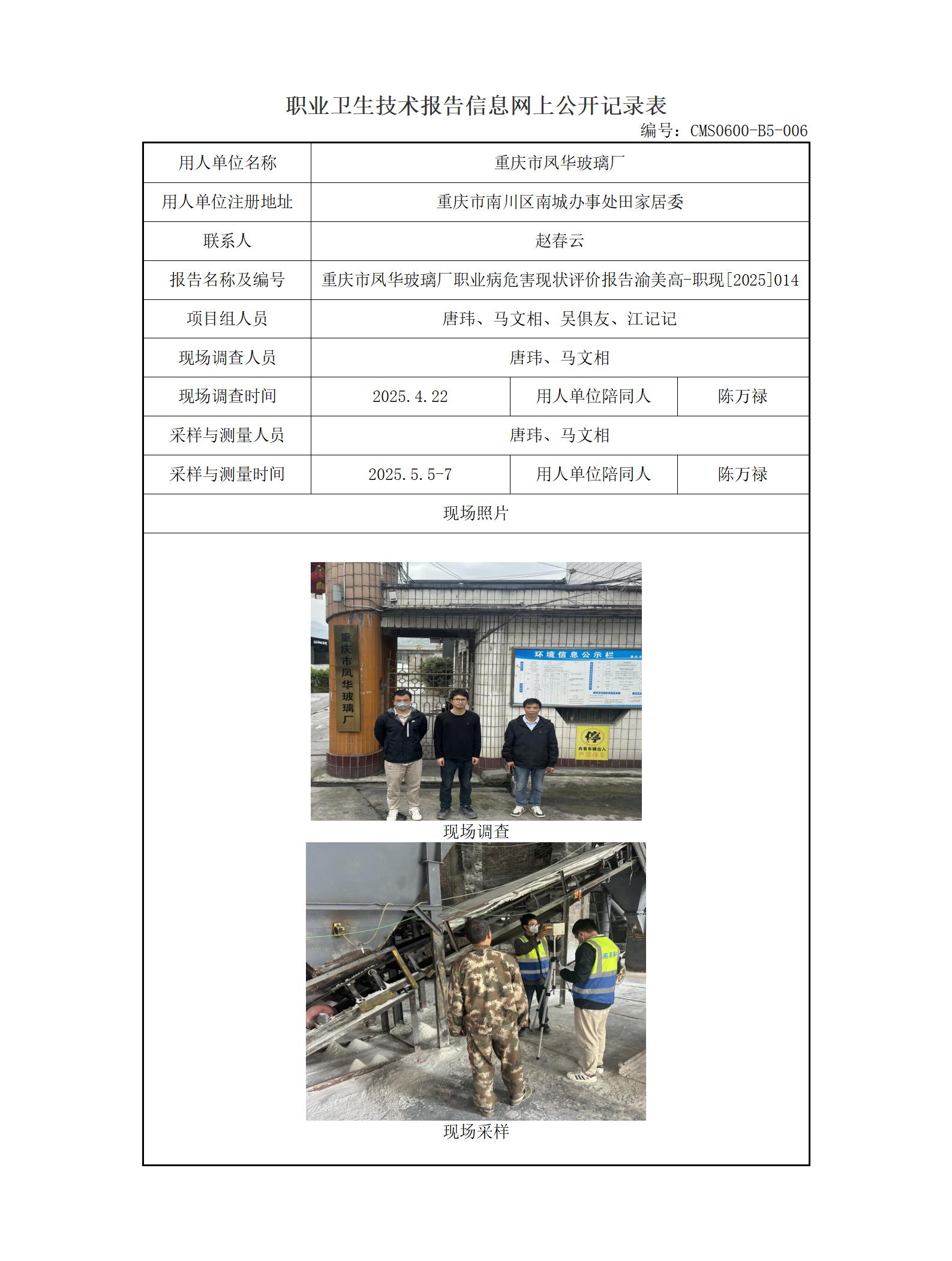 2025年-重庆市凤华玻璃厂职业病危害现状评价